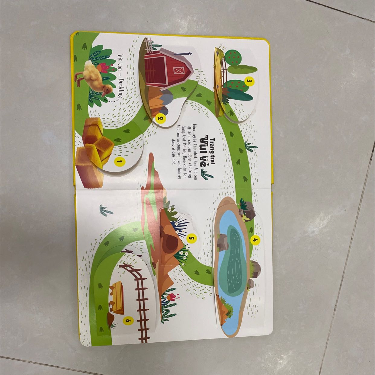 - Tương tác với sách: Điểm đặc biệt của cuốn sách là những miếng lật mở. Khi lật mở từng miếng, bé sẽ khám phá ra những hình ảnh ẩn giấu bên dưới, từ đó kích thích trí tò mò và khả năng khám phá của bé.