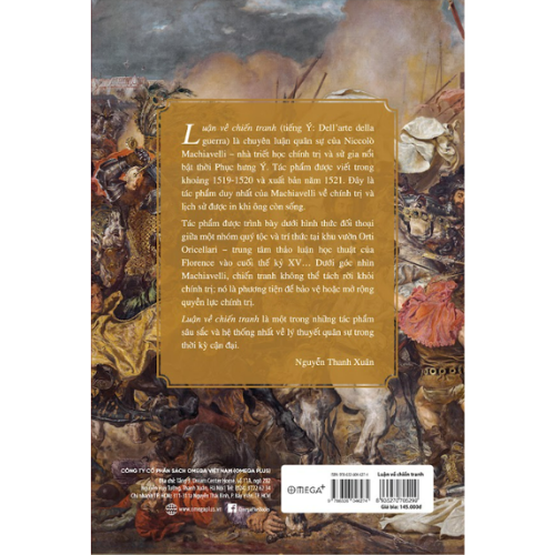 “Luận về chiến tranh” là chuyên luận quân sự của Niccolò Machiavelli – nhà triết học chính trị và sử gia nổi bật thời Phục hưng Ý, được viết trong khoảng 1519-1520 và xuất bản năm 1521. Đây là tác phẩm duy nhất của Machiavelli về chính trị và lịch sử được in khi ông còn sống.Giá sản phẩm trên Tiki đã bao gồm thuế theo luật hiện hành. Bên cạnh đó, tuỳ vào loại sản phẩm, hình thức và địa chỉ giao hàng mà có thể phát sinh thêm chi phí khác như phí vận chuyển, phụ phí hàng cồng kềnh, thuế nhập khẩu (đối với đơn hàng giao từ nước ngoài có giá trị trên 1 triệu đồng).....