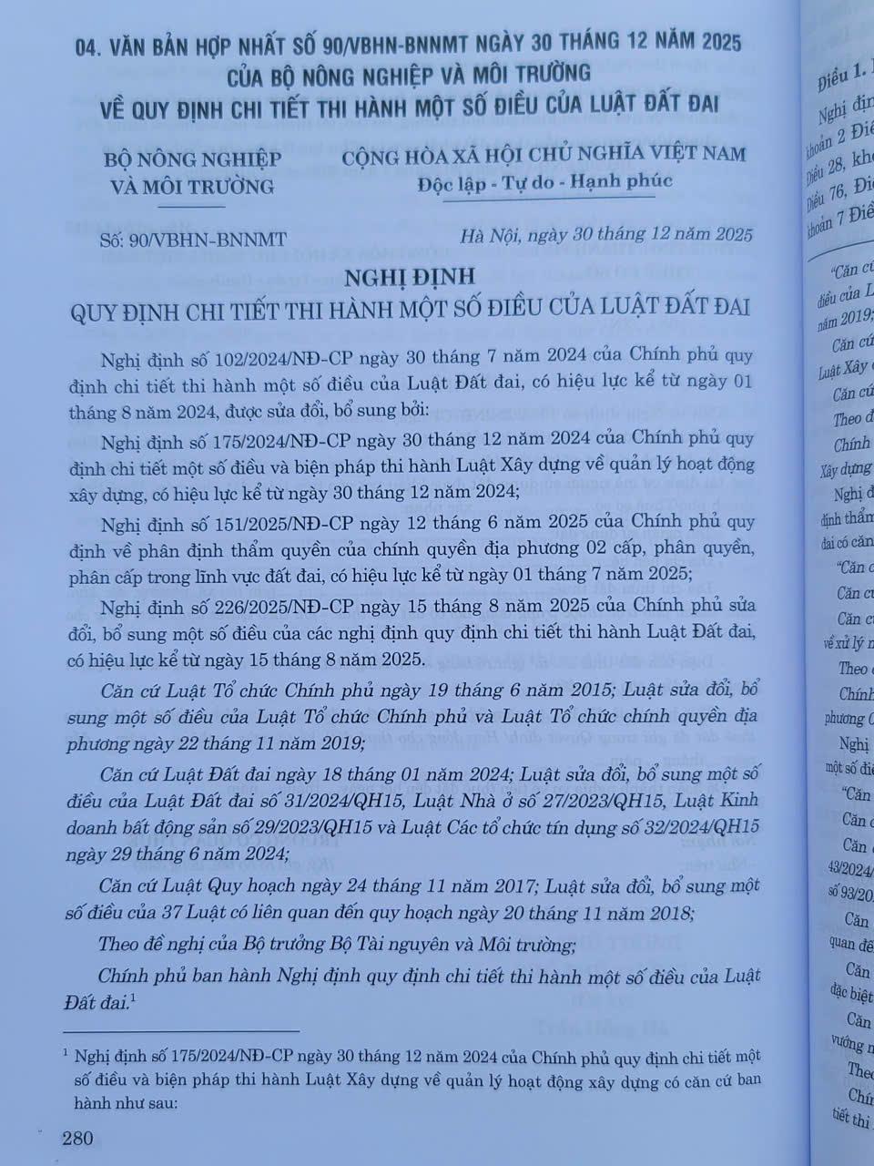 - VĂN BẢN HỢP NHẤT SỐ 90/VBHN-BNNMT ngày 30 tháng 12 năm 2025 CỦA BỘ NÔNG NGHIỆP VÀ MÔI TRƯỜNG VỀ QUY ĐỊNH CHI TIẾT THI HÀNH MỘT SỐ ĐIỀU CỦA LUẬT ĐẤT ĐAI