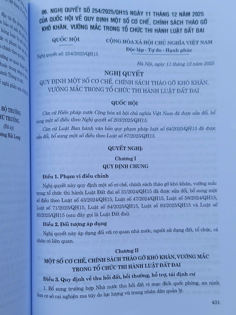 - NGHỊ QUYẾT SỐ 254/2025/QH15 ngày 11 tháng 12 năm 2025 CỦA QUỐC HỘI VỀ QUY ĐỊNH MỘT SỐ CƠ CHẾ, CHÍNH SÁCH THÁO GỠ KHÓ KHĂN, VƯỚNG MẮC TRONG TỔ CHỨC THI HÀNH LUẬT ĐẤT ĐAI