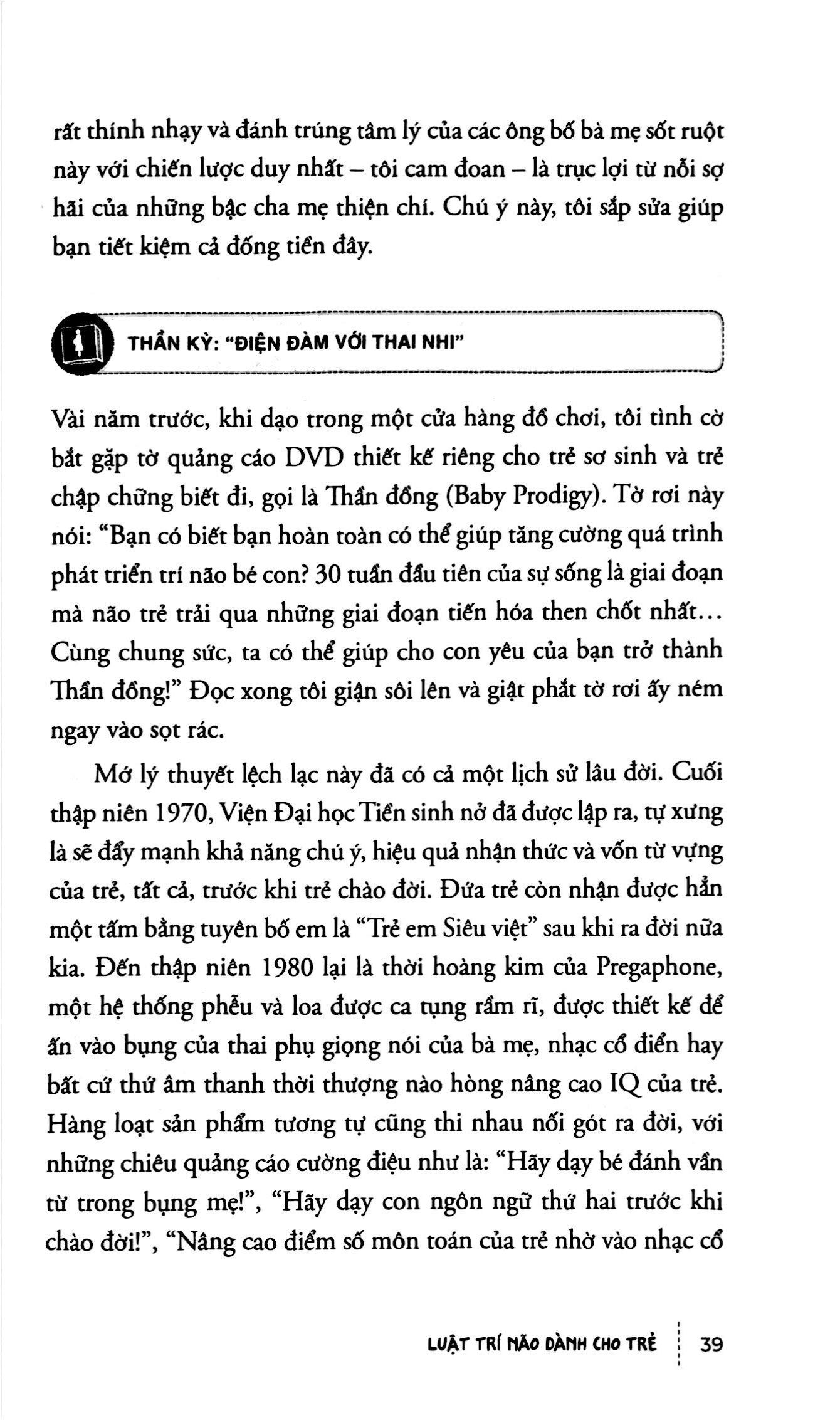 - Lật đổ các “lời đồn”: Các sản phẩm thương mại như đĩa nhạc Mozart cho thai nhi hay các chương trình dạy từ trong bụng mẹ không có tác dụng tăng IQ.