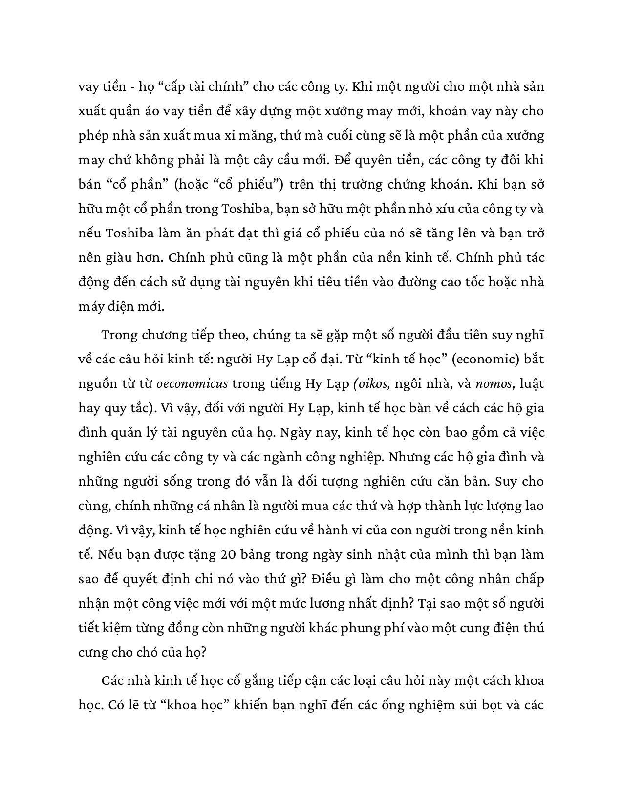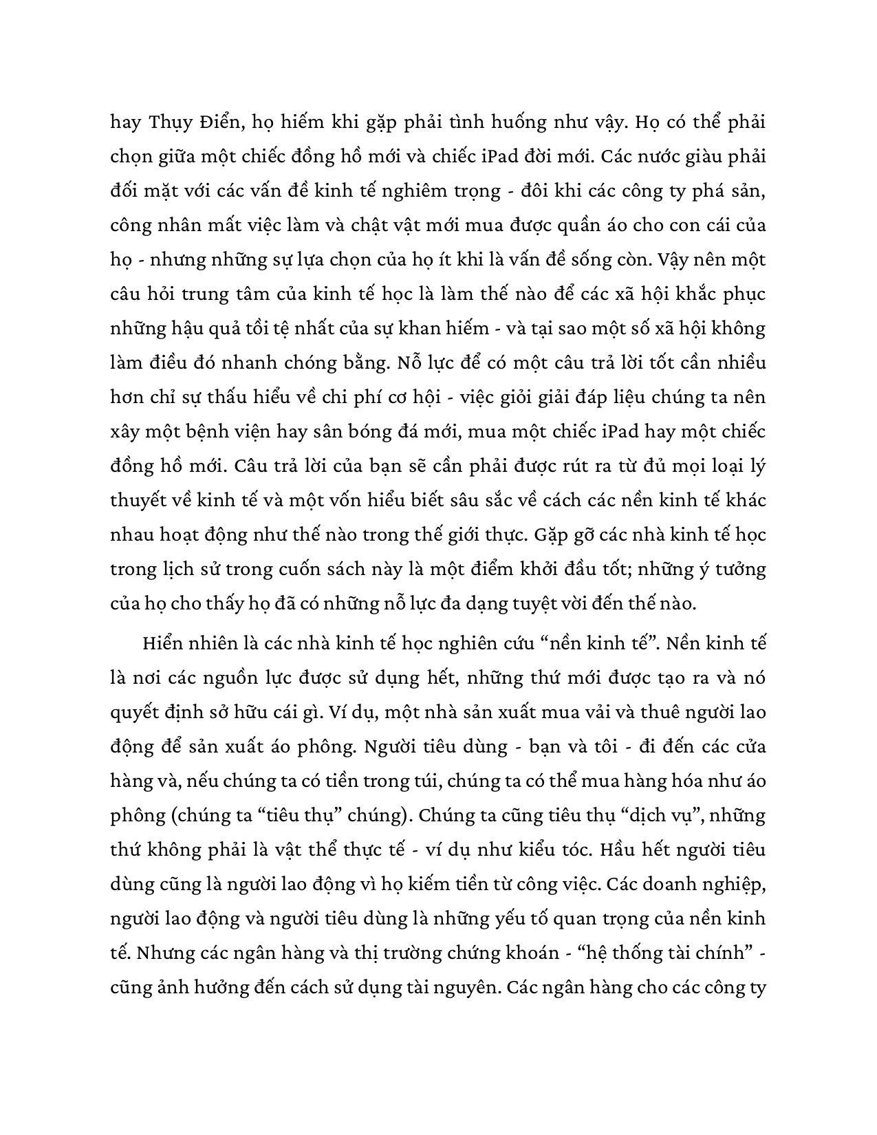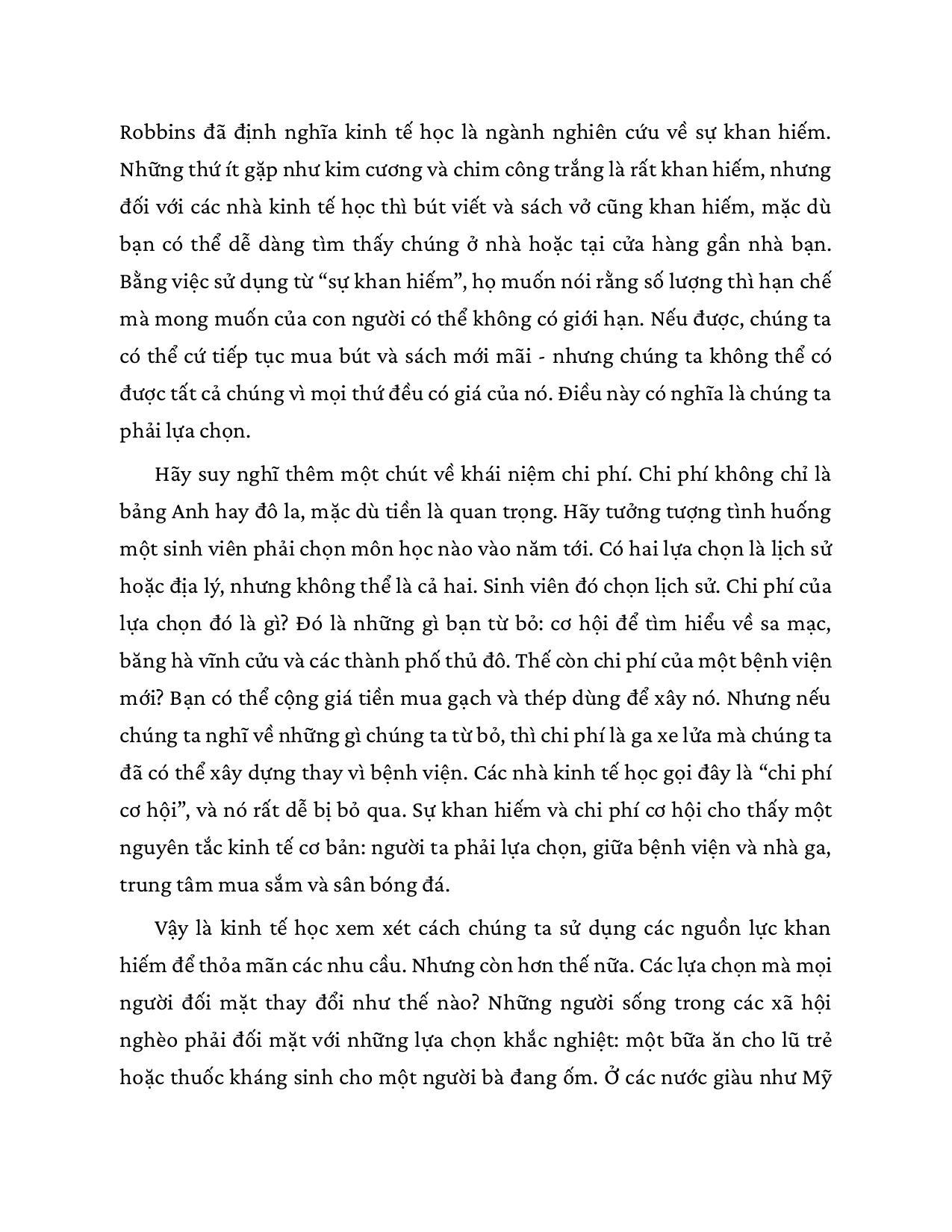 Đây chỉ là một ví dụ trong vô số bài toán kinh tế mà mỗi chúng ta phải giải hằng ngày. Như vậy, kinh tế học hóa ra không chỉ là một lĩnh vực tri thức cao siêu, xa vời dành riêng cho những nhà kinh tế học, chính khách hay doanh nhân, nó hiện diện trong mọi quyết định lớn nhỏ của đời sống. Nhận thức được tầm quan trọng của những hiểu biết kinh tế học căn bản đối với con người trong xã hội đương đại nhiều biến động khó lường, Niall Kishtainy đã trang bị cho độc giả đại chúng một “công cụ” sắc bén, hữu ích mà lại rất dễ dàng tiếp cận.