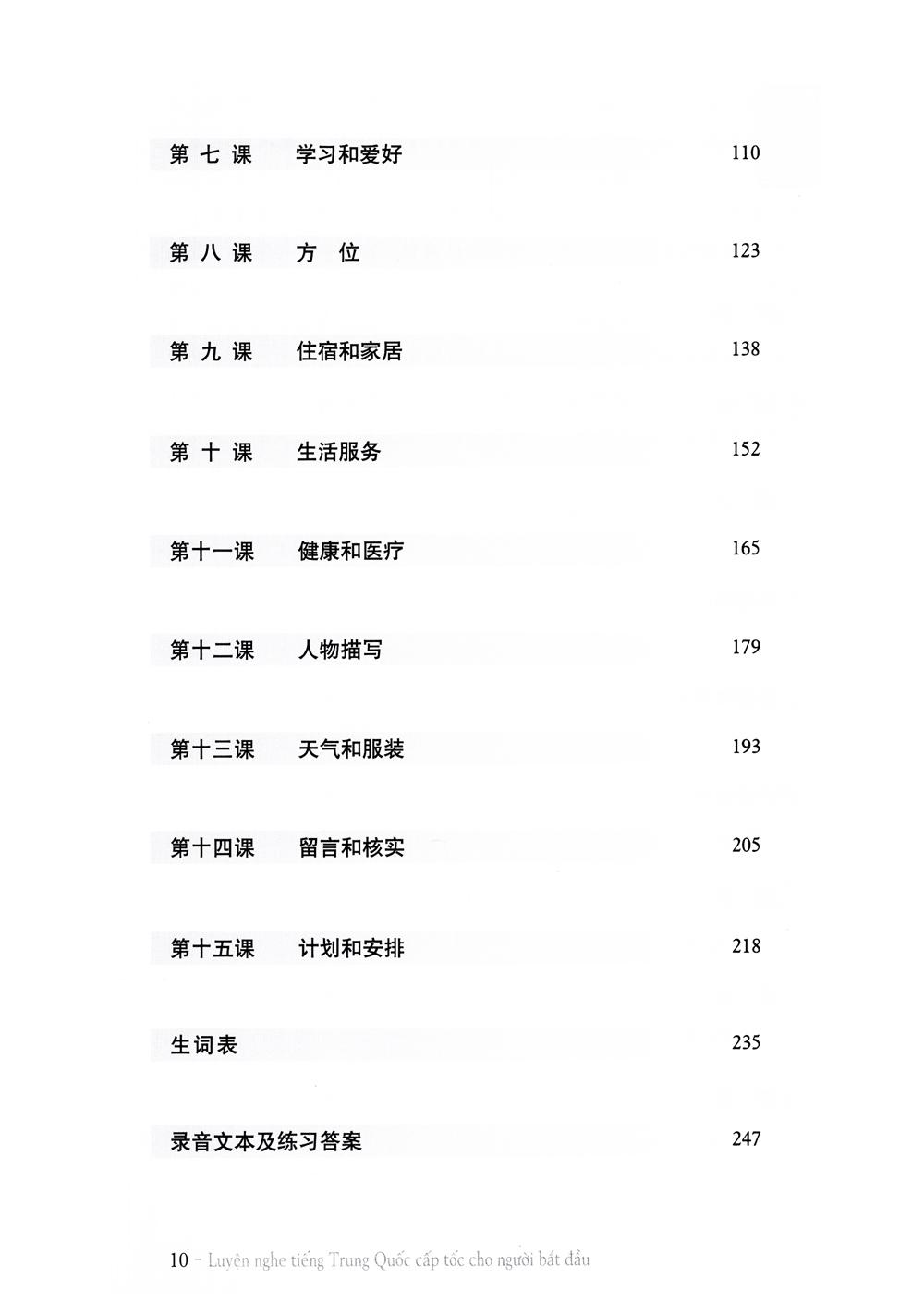 Luyện nghe tiếng Trung Quốc cấp tốc là bộ giáo trình được biên soạn cho sinh viên nước ngoài đến du học ngắn hạn tại Trung Quốc với mục đích giúp sinh viên bồi dưỡng kỹ năng giao tiếp. Toàn bộ giáo trình gồm 5 trình độ, được chia làm 3 cấp (sơ cấp, trung cấp và nâng cao), trong đó mỗi quyển tương ứng với một trình độ của sinh viên nước ngoài có nhu cầu học cấp tốc.