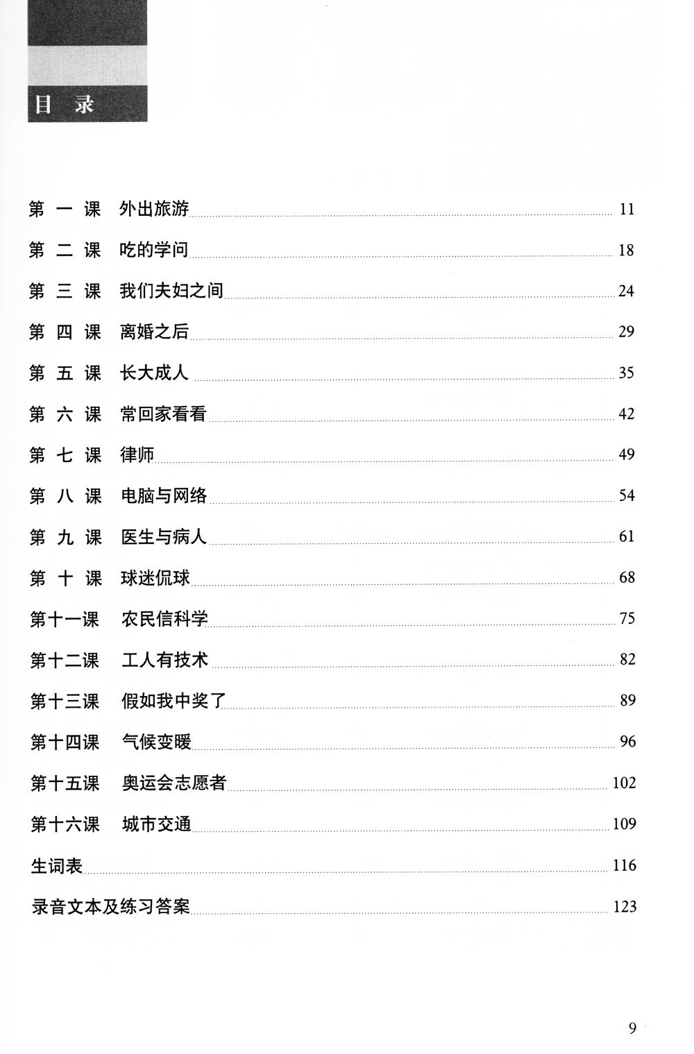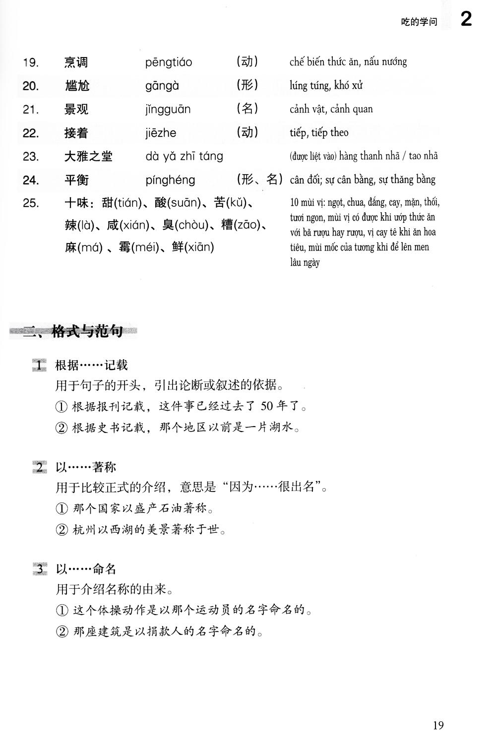 Cuốn sách này thích hợp cho người học đã có khả năng nghe nói trung cấp, nắm được các nội dung ngữ pháp cơ bản trong tiếng Trung Quốc và có vốn từ vựng trên 2500 từ. Giáo trình gồm 14 bài, chủ yếu giới thiệu từ vựng, ngữ pháp và những mẫu văn nói, văn viết cơ bản thường được sử dụng trong tiếng Trung Quốc với trình độ tương đương B và C, cùng các tình huống giao tiếp tương đối phức tạp có nội dung liên quan đến các lĩnh vực trong cuộc sống như sinh hoạt, học tập, công việc, văn hoá, xã hội....