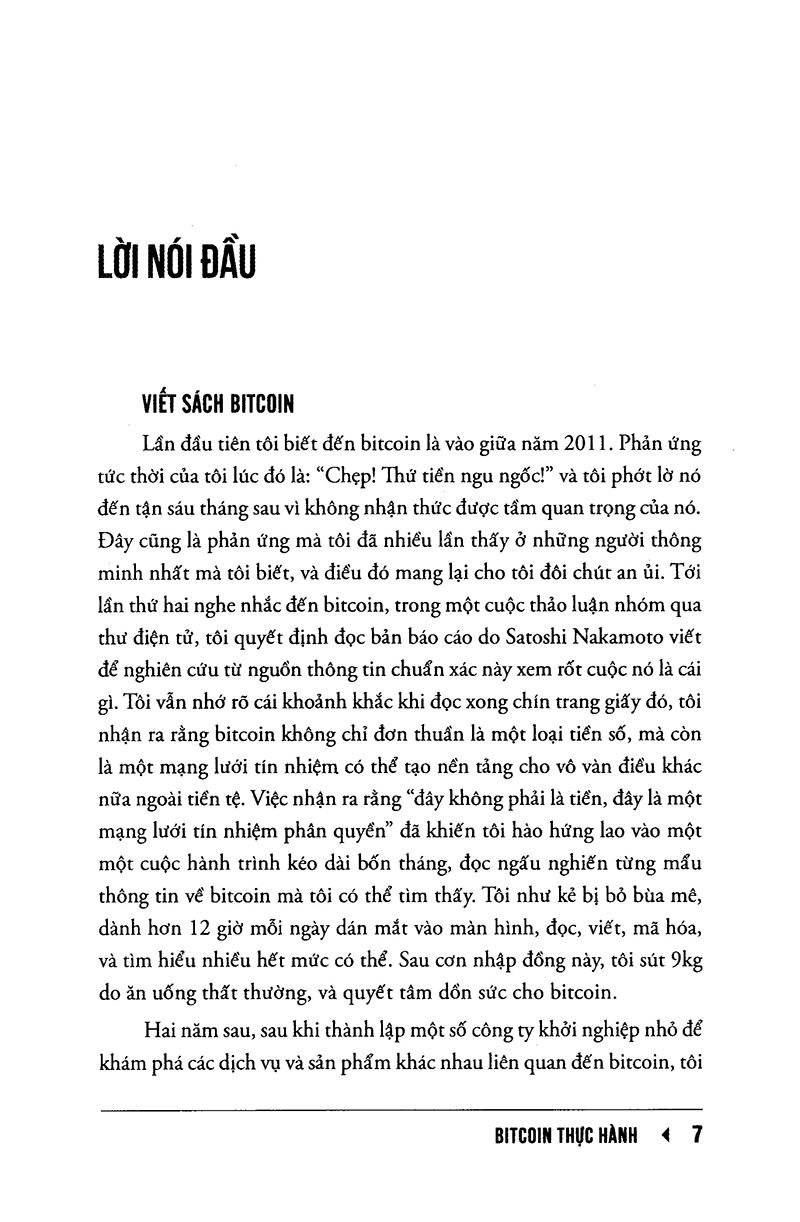 Mastering Bitcoin cung cấp các kiến thức cần thiết để giúp độc giả gia nhập thế giới của tiền ảo. Bitcoin là đồng tiền số thành công đầu tiên không do bất kỳ một chính phủ nào phát hành. Mặc dù bitcoin vẫn đang ở giai đoạn mới hình thành tuy nhiên, nó đã tạo ra đươc một nền kinh tế hàng tỉ đô. Nền kinh tế này luôn mở ra chào đón tất cả những ai có kiến thức và đam mê gia nhập. Và cuốn sách cung cấp cho bạn kiến thức, còn bạn chỉ cần theo đuổi nó với đam mê.