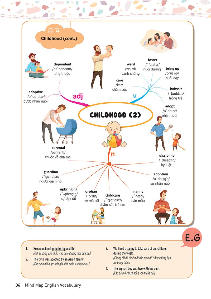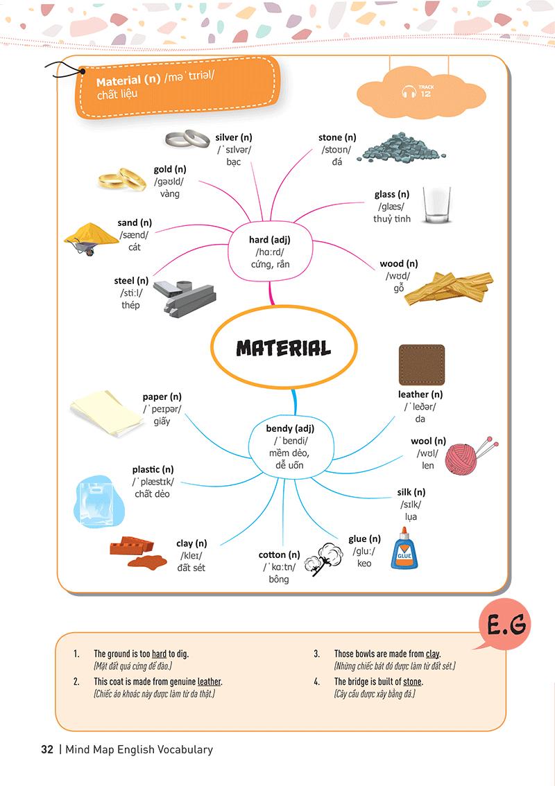 Toàn bộ kiến thức từ vựng Tiếng Anh được thiết kế dưới dạng Sơ đồ tư duy – Mind map, kết hợp với hình ảnh sinh động, giải thích cách sử dụng qua những từ khóa chính giúp bạn ghi nhớ nhanh và hiệu quả hơn.