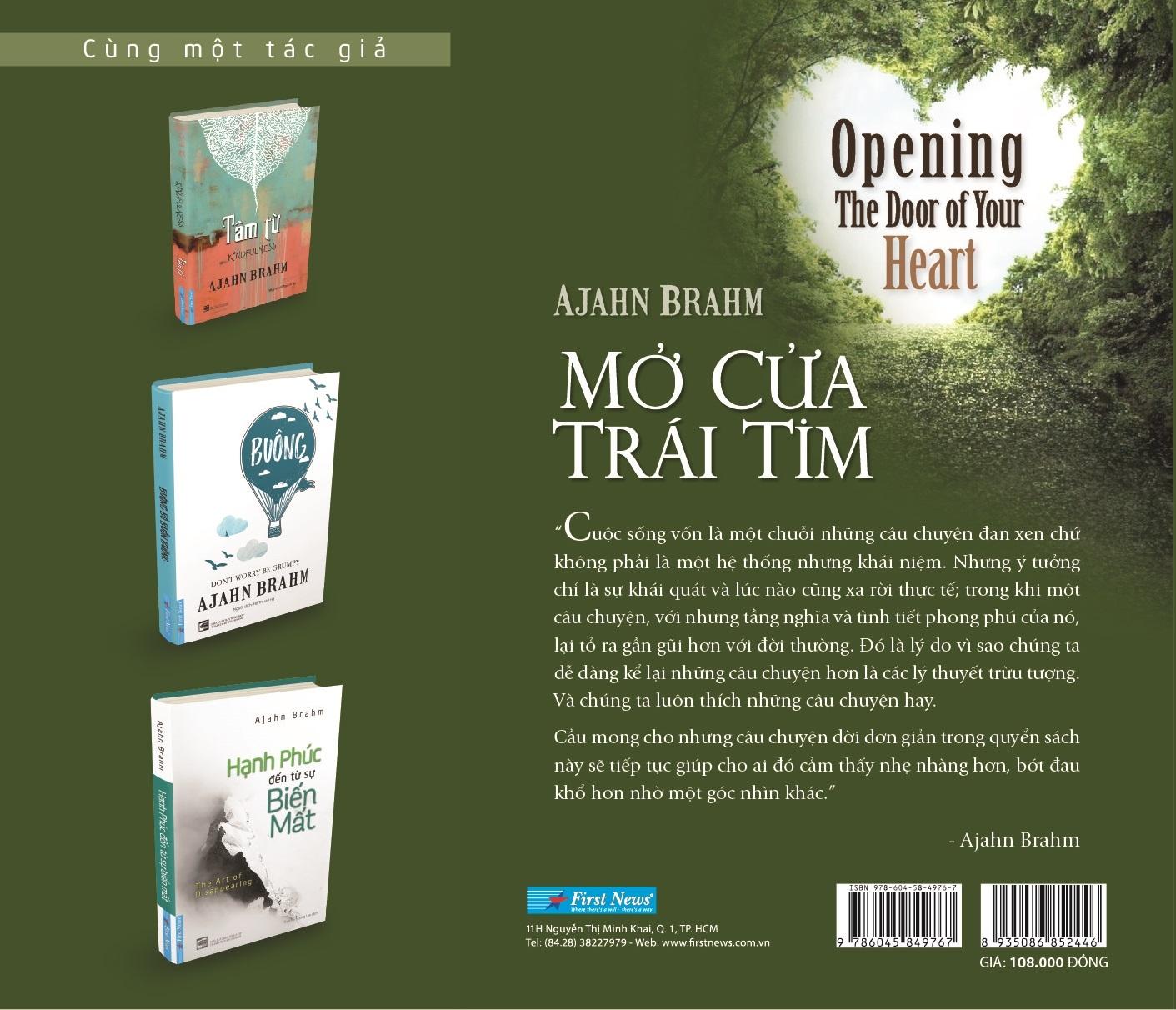 Nếu bạn yêu thích cách những thông điệp cuộc sống được truyền tải nhẹ nhàng thông qua các câu chuyện ngắn như trong tuyển tập Hạt giống tâm hồn thì Mở cửa trái tim của sư trụ trì Ajahn Brahm hẳn là một lựa chọn khác mà bạn nên xem xét.
