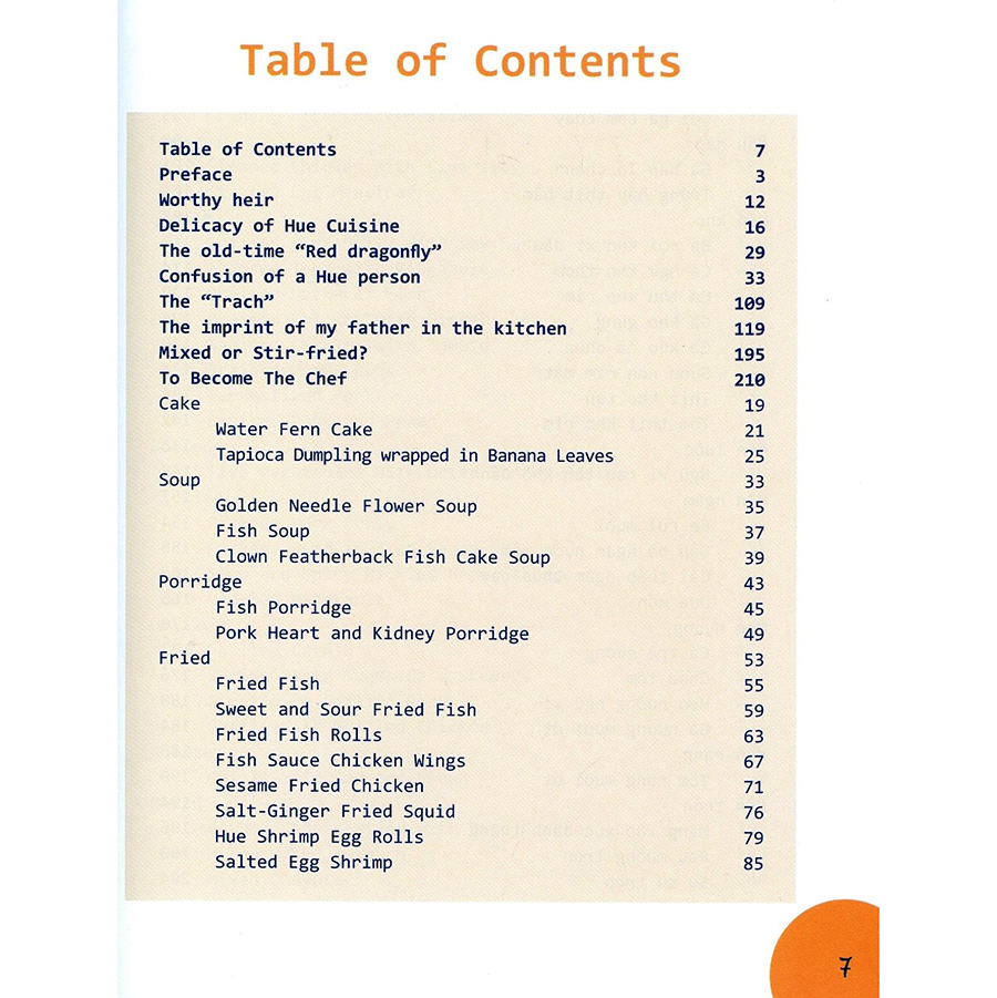 Đây là cẩm nang cần thiết đúc kết kinh nghiệm và những món ăn gần gũi, dễ làm từ kho tàng ẩm thực phong phú và đặc sắc của Huế. Quyển sách sẽ có những đóng góp trong việc giới thiệu rộng rãi nét văn hóa ẩm thực đặc trưng đến những người yêu ẩm thực.
