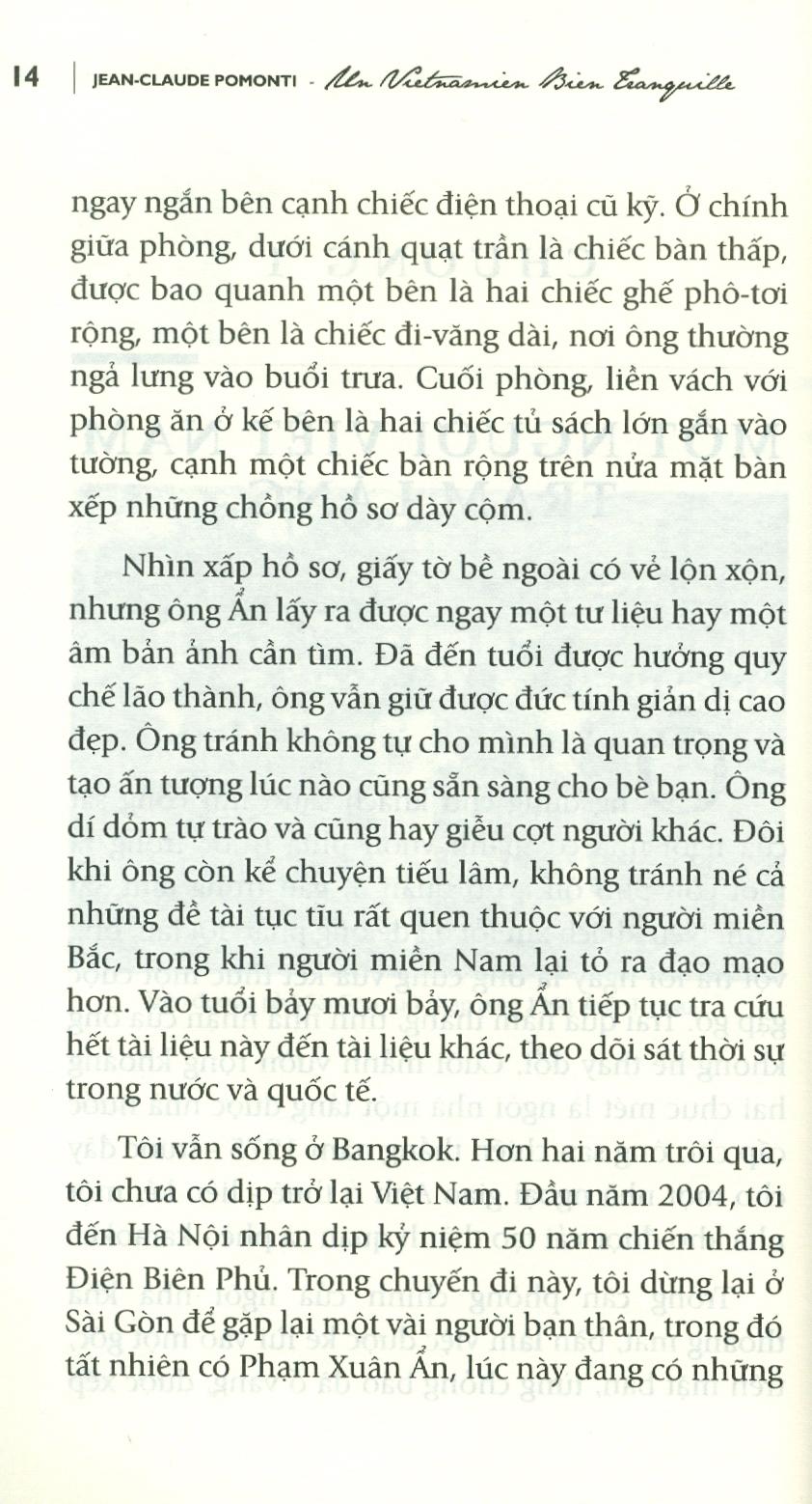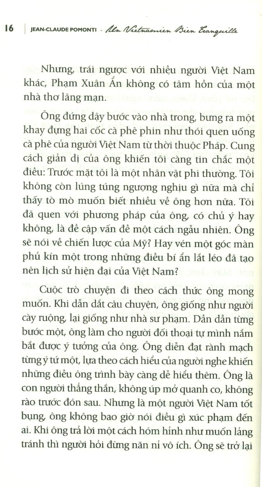 Tác phẩm với (tựa gốc tiếng Pháp: Un Vietnamien bien tranquille) của Jean-Claude Pomonti là một cách dựng tiểu sử nhà tình báo lỗi lạc Việt Nam Phạm Xuân Ẩn khá độc đáo.
