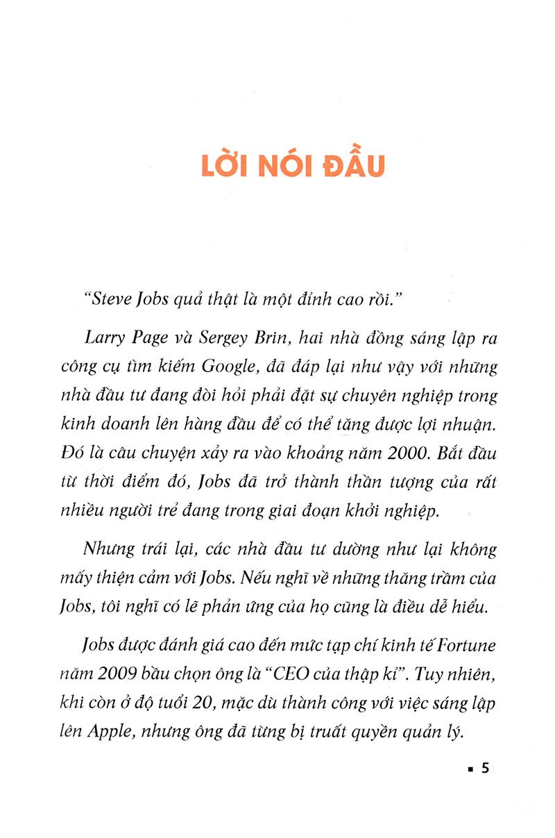 "Steve Jobs quả thật là một đỉnh cao rồi. Larry Page và Sergey Brin, hai nhà đồng sáng lập ra công cụ tìm kiếm Google, đã đáp lại như vậy với những nhà đầu tư đang đòi hỏi phải đạt sự chuyên nghiệp trong kinh doanh lên hạng đầu để có thể tăng được lợi nhuận. Dó là câu chuyện xảy ra vào khoảng năm 2000. Bắt đầu từ thời điểm đó, Jobs đã trở thành thần tượng của rất