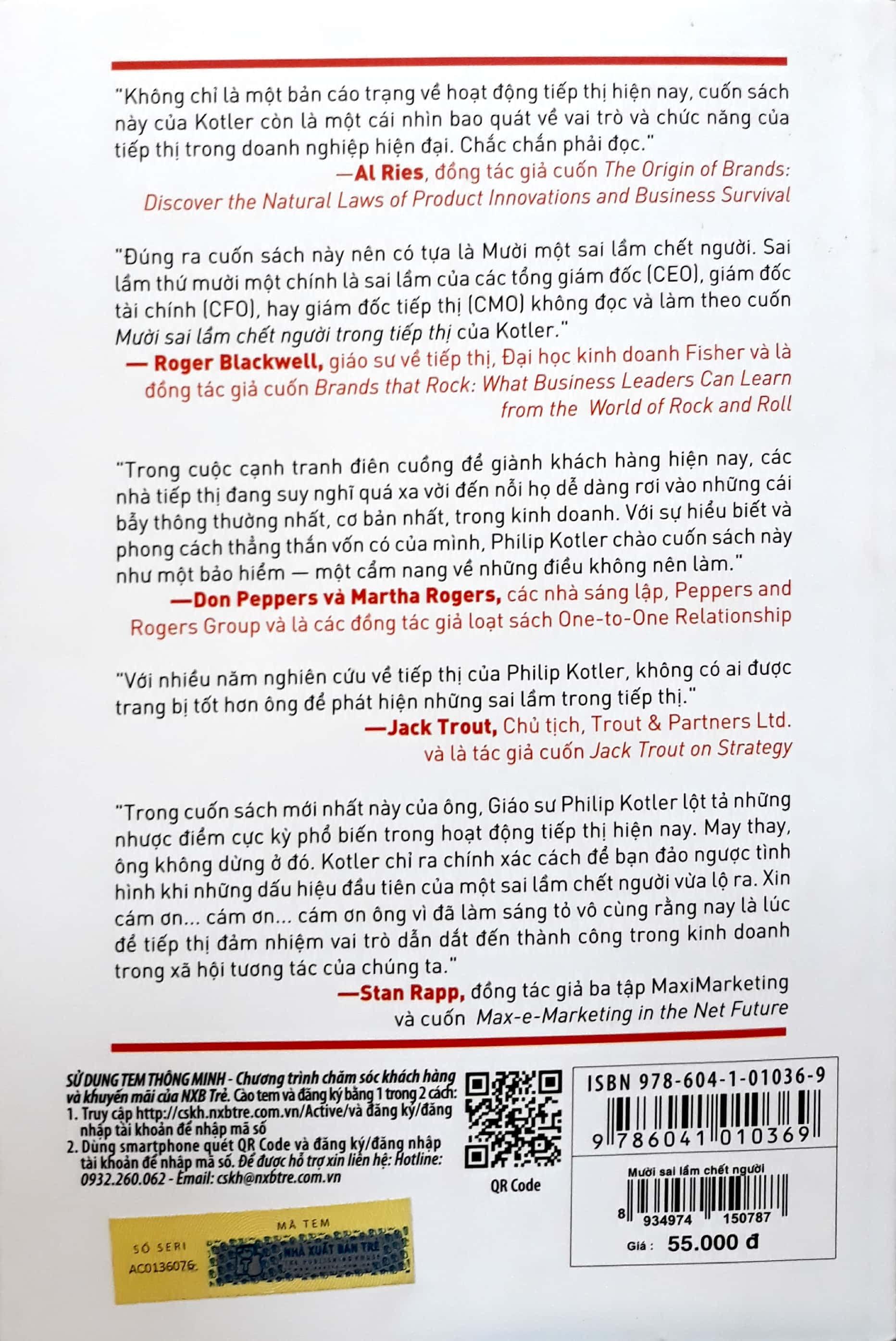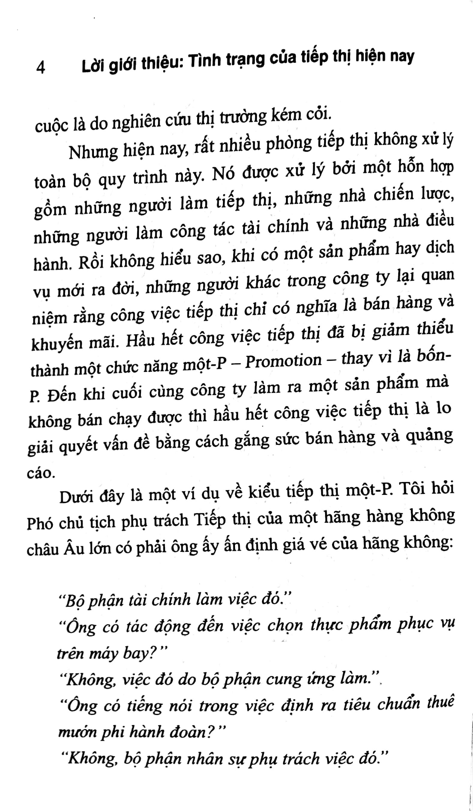 Trong cuốn sách mới nhất này Giáo sư Philip Kotler lột tả những nhược điểm cực kỳ phổ biến trong hoạt động tiếp thị hiện nay và đồng thời ông cũng chỉ ra cách chính xác để bạn đảo ngược tình thế khi những dấu hiệu đầu tiên của một sai lầm chết người vừa lộ ra. Cuốn sách được chào đón như một bảo hiểm - một cẩm nang về những điều không nên làm trong tiếp thị.