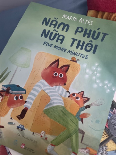 “Năm phút nữa thôi” sẽ mang đến cho các bạn nhỏ những giờ phút vui nhộn cùng gia đình nhà cáo. Các bạn cũng sẽ biết được rằng thời gian ở những thời điểm khác nhau, đối với những người khác nhau cũng sẽ khác nhau đấy. Hãy cùng đón chờ những điều thú vị trong cuốn sách tranh song ngữ “Năm phút nữa thôi” nhé!