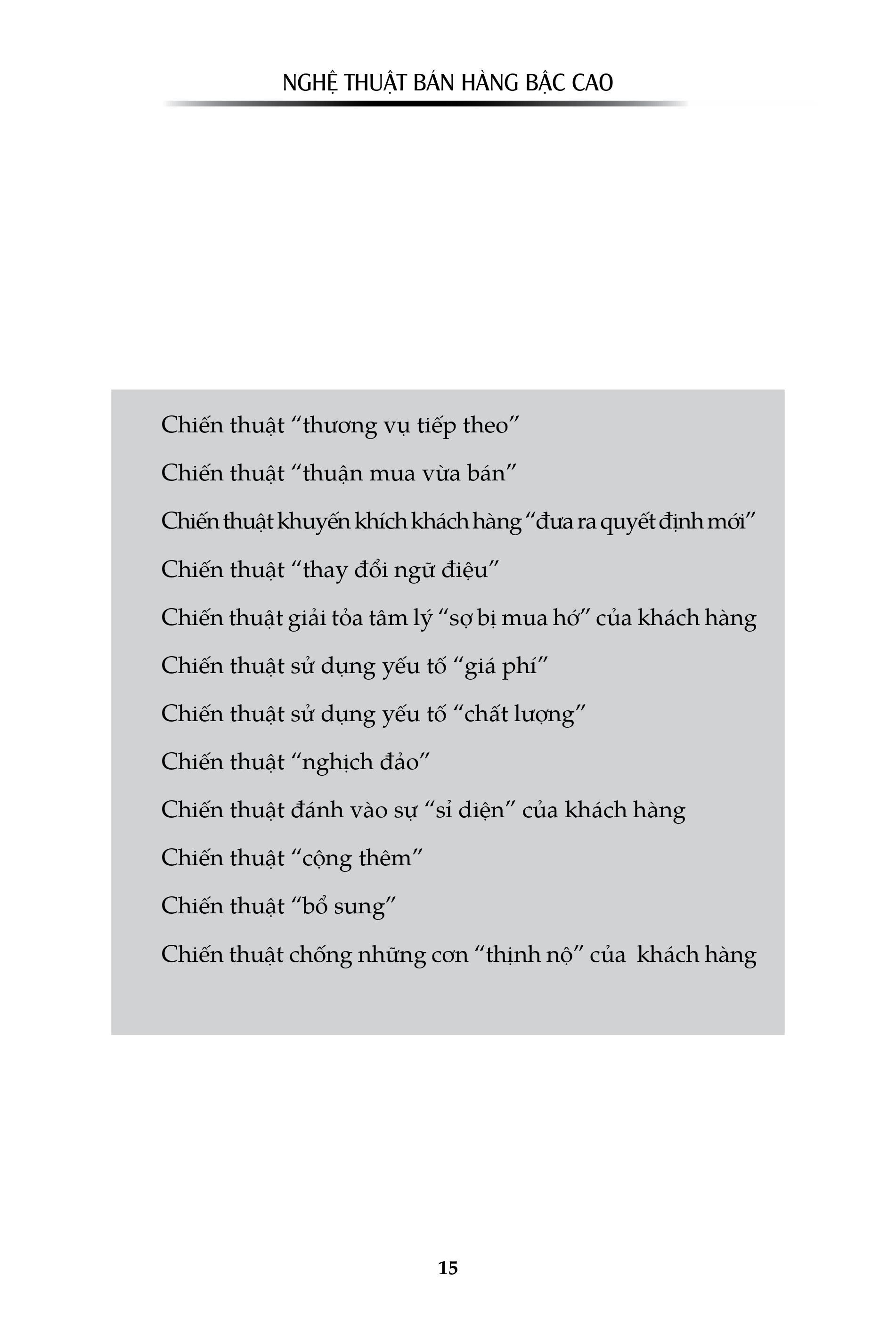 Nghệ Thuật Bán Hàng Bậc Cao - Bí Quyết Chốt Deal Mọi Thời Đại (Khổ Lớn) (Tái Bản 2021)Giá sản phẩm trên Tiki đã bao gồm thuế theo luật hiện hành. Bên cạnh đó, tuỳ vào loại sản phẩm, hình thức và địa chỉ giao hàng mà có thể phát sinh thêm chi phí khác như phí vận chuyển, phụ phí hàng cồng kềnh, thuế nhập khẩu (đối với đơn hàng giao từ nước ngoài có giá trị trên 1 triệu đồng).....