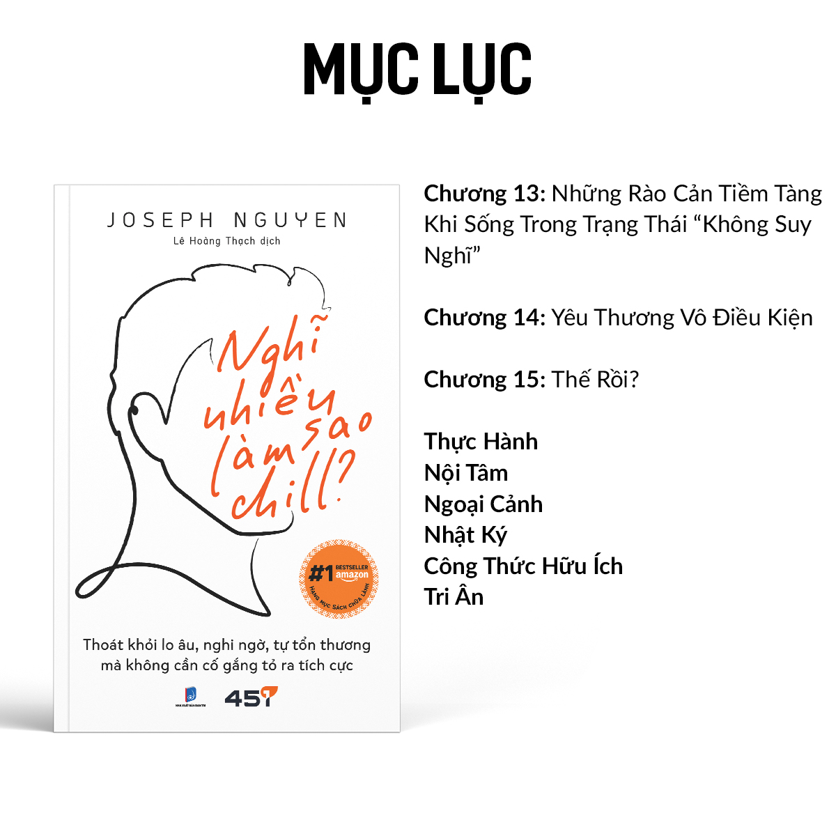 Ai cũng có thể hạnh phúc. Bóng tối là mặt trái của ánh sáng – có nghĩa là, ngay cả trong những giờ phút tăm tối nhất, ánh sáng vẫn hiện diện ở phía bên kia. Nghĩ Nhiều Làm Sau Chill không dạy bạn cách lập trình lại bộ não, viết lại quá khứ hay ép buộc mình vào lối suy nghĩ tích cực độc hại. Đó chỉ là những mưu mẹo tạm thời, chỉ có sự thức tỉnh trong nhận thức mới mang lại hiệu quả lâu dài.