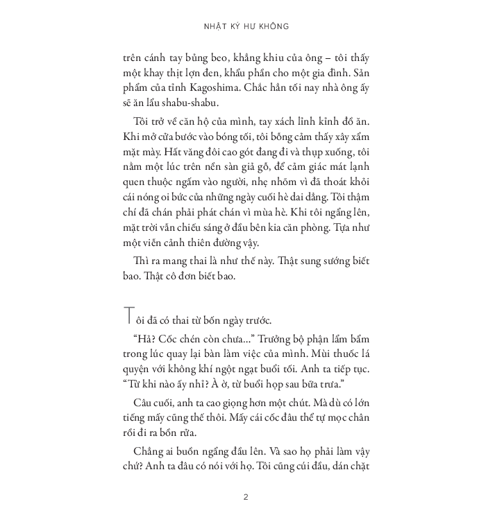 Sáng tác của Emi Yagi luôn thể hiện cái nhìn sâu sắc về đời sống công sở và kỳ vọng giới ở nước Nhật hiện đại. Kể về một nữ nhân viên văn phòng “bỗng nhiên” mang thai nhằm tránh thoát khỏi những gánh nặng không tên nơi công sở, “Nhật ký hư không” là sự châm biếm sắc bén một xã hội phụ quyền đặt quá nhiều kỳ vọng vào phụ nữ, và mỉa mai tình trạng đối xử hà khắc một cách hiển nhiên với những người phụ nữ trong môi trường công sở.