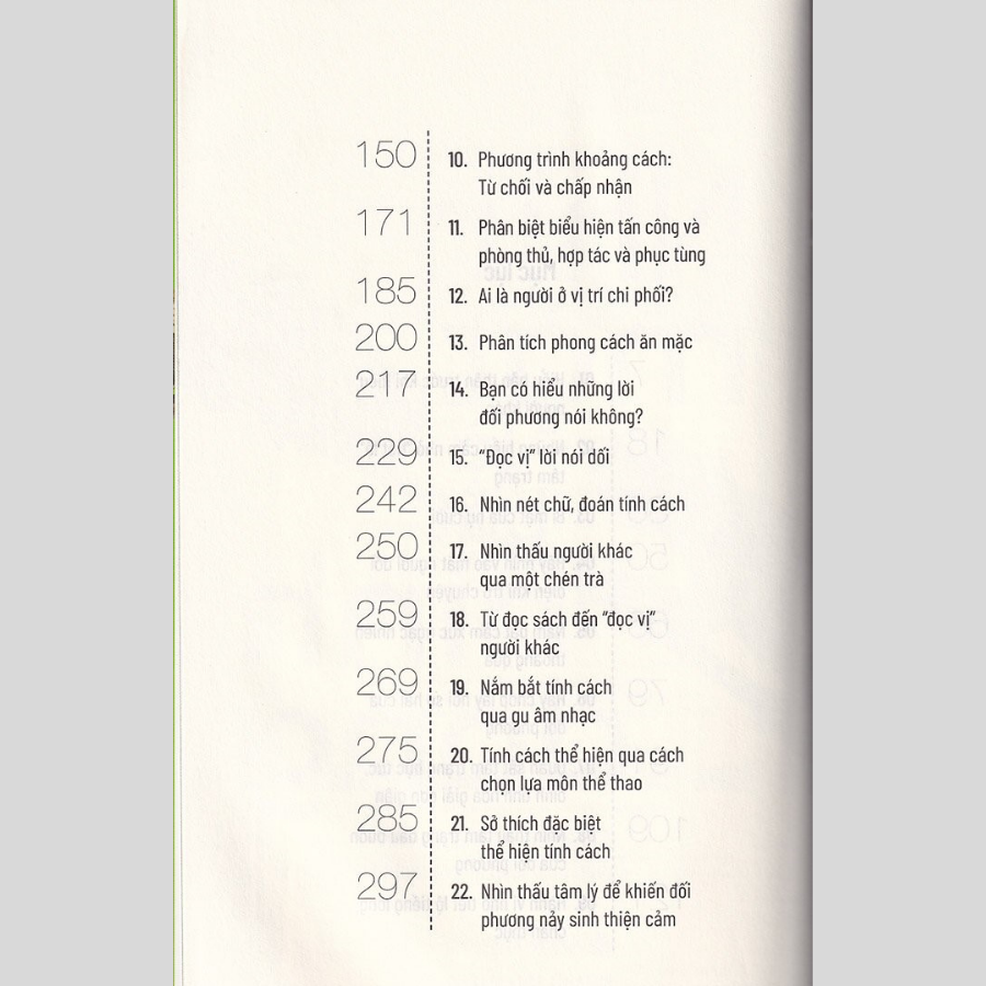 Tác giả đưa ra phán đoán về người đối diện thông qua phân tích các biểu hiện, hành vi. Một số mình thấy khá ổn, tuy nhiên một số chỉ nên tham khảo, vd: coi chữ viết đoán tính cách!? Lưu ý là tác giả phân tích trên từng hành vi riêng biệt, vì vậy việc phán đoán có thể sẽ không chính xác trên thực tế nếu chỉ dùng một chi tiết này, chúng ta nên kết hợp nhiều yếu tố khác nhau để đưa ra nhận định về người khác. Thực tế chắc không đơn giản như sách nhưng mình nghĩ các nội dung được nêu ra cũng gợi ý cho mình biết nên để ý thêm điều gì trong mối quan hệ với người khác chứ không chỉ là lời nói thông thường. Các ví dụ đôi khi cũng hơi chưng hửng, giống kiểu sách "hạt giống tâm hồn" nhưng nếu không quá khó tính thì mình nghĩ ko thành vấn đề. Ngoài lề, cuốn này ghi tác giả là Văn Hàn, nhưng nội dung kha khá giống cuốn "Giải mã hành vi, bắt gọn tâm lý" (cùng dịch giả, tác giả Lộc Dã). Mình mua cả 2 cuốn và xem sơ qua thì thấy cùng bố cục, có những đoạn giống nhau y đúc!? Không biết cùng tác giả hay không? Nếu vậy sao không để cùng tên? Nói chung là hơi khó hiểu. Các bạn quan tâm thì nên mua trước 1 cuốn, thích thì mua cuốn còn lại cũng ko muộn.