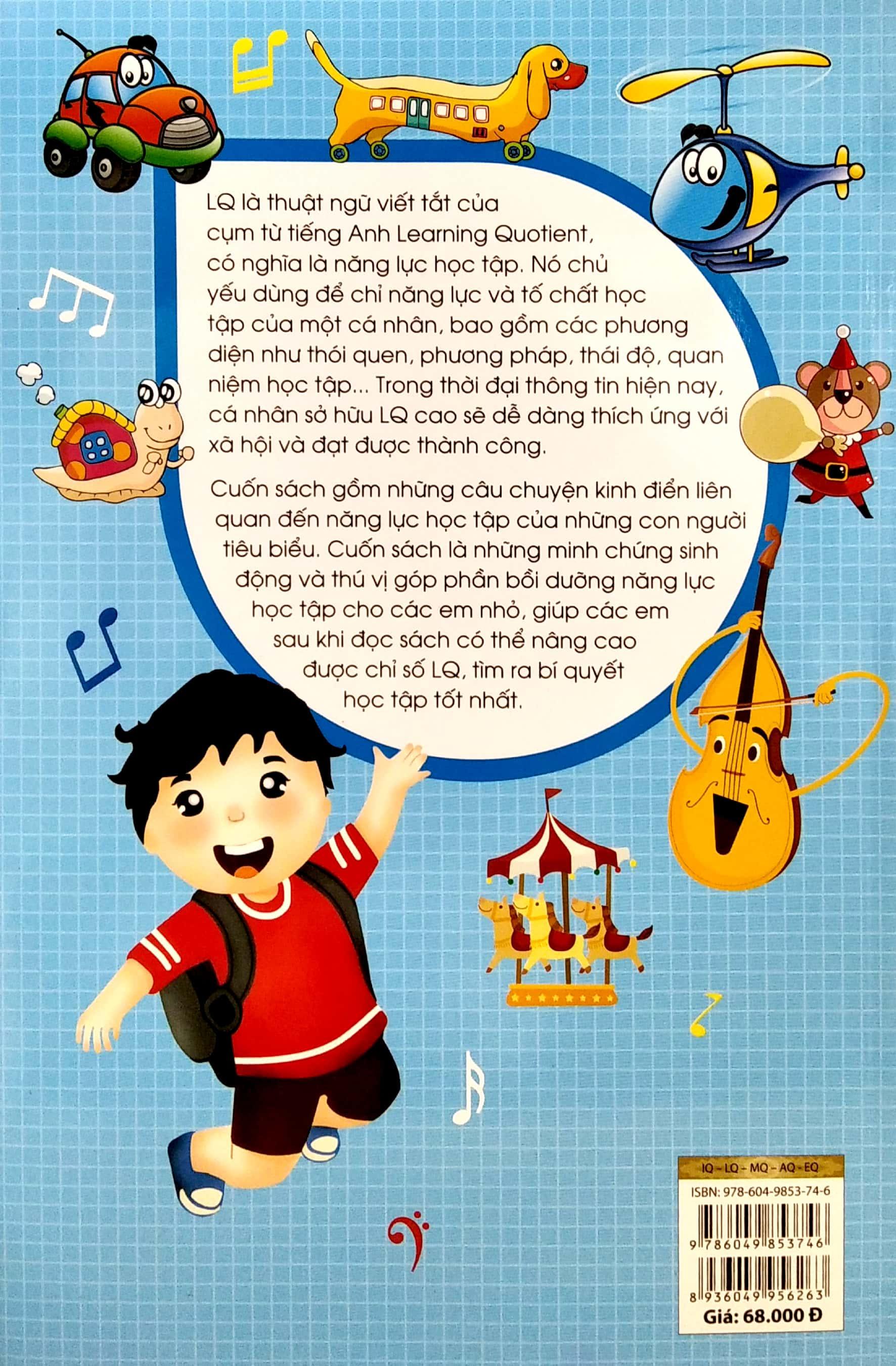 LQ là thuật ngữ viết tắt của cụm từ tiếng anh Learning Quotient, có nghĩa là năng lực học tập. Nó chủ yếu dùng để chỉ năng lực và tố chất học tập của một cá nhân, bao gồm các phương diện như thói quen, phương pháp, thái độ, quan niệm học tập… Trong thời đại thông tin hiện nay, cá nhân sở hữu LQ cao sẽ dễ dàng thích ứng với xã hội và đạt được thành công.Cuốn sách gồm những câu chuyện kinh điển liên quan đến năng lực học tập của những con người tiêu biểu. Cuốn sách là những minh chứng sinh động và thú vị góp phần bồi dưỡng năng lực học tập cho các em nhỏ, giúp các em sau khi đọc sách có thể nâng cao được chỉ số LQ, tìm ra bí quyết học tập tốt nhât