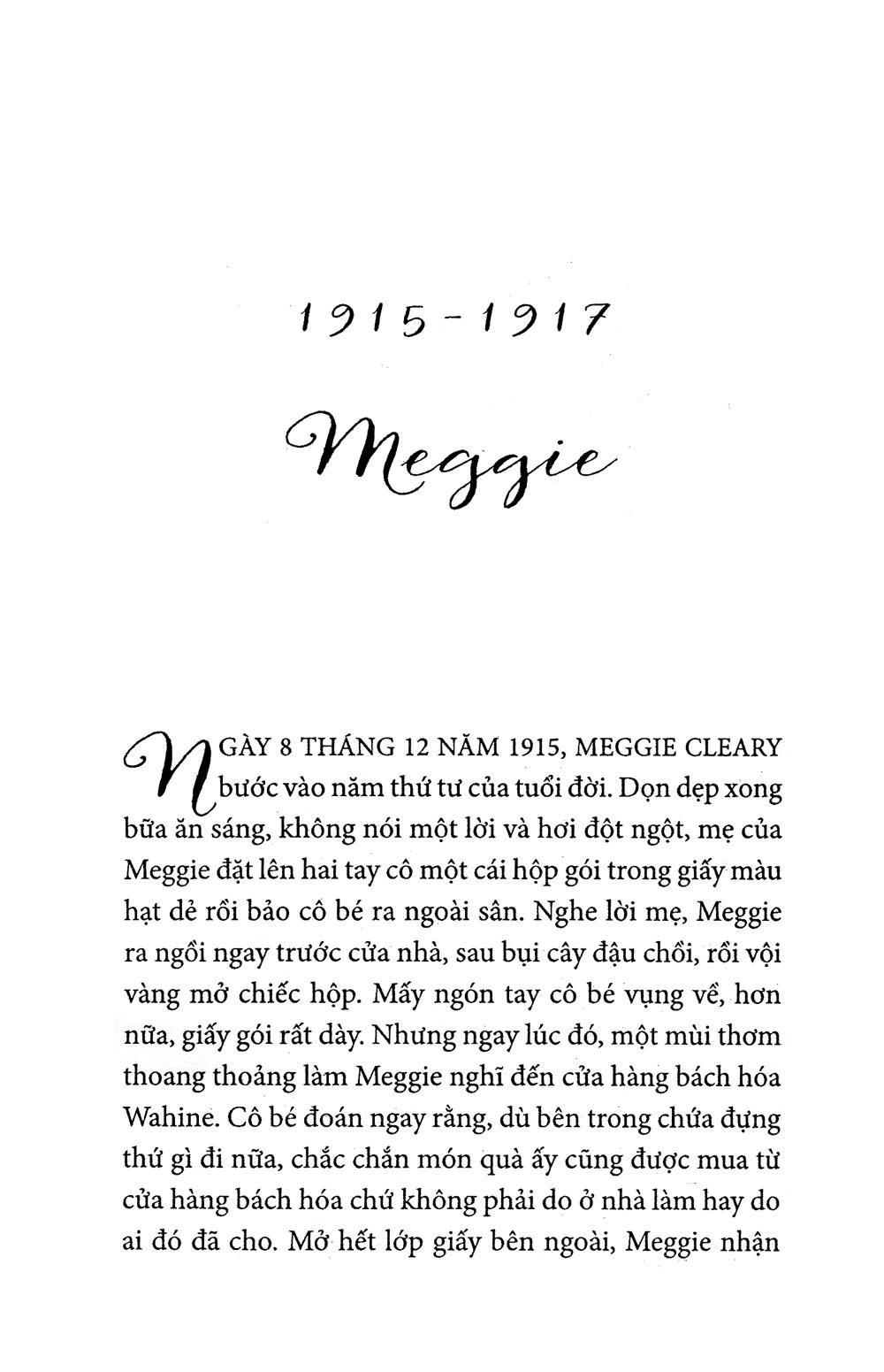 Một câu chuyện tình chua xót, một sử thi mạnh mẽ về nỗ lực và hy sinh, một sự ngợi ca cá nhân và tinh thần con người, tuyệt tác của Colleen McCullough là một áng văn bất hủ – một cuốn tiểu thuyết mang tính bước ngoặt để được yêu mến và đọc đi đọc lại hết lần này đến lần khác.