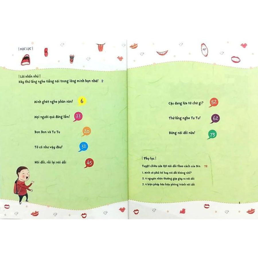 - Tại sao nói dối lại không tốt: Cuốn sách giúp trẻ hiểu rõ tại sao nói dối lại là một hành động sai trái và có thể gây ra những hậu quả nghiêm trọng như mất lòng tin của người khác, ảnh hưởng đến mối quan hệ gia đình, bạn bè.