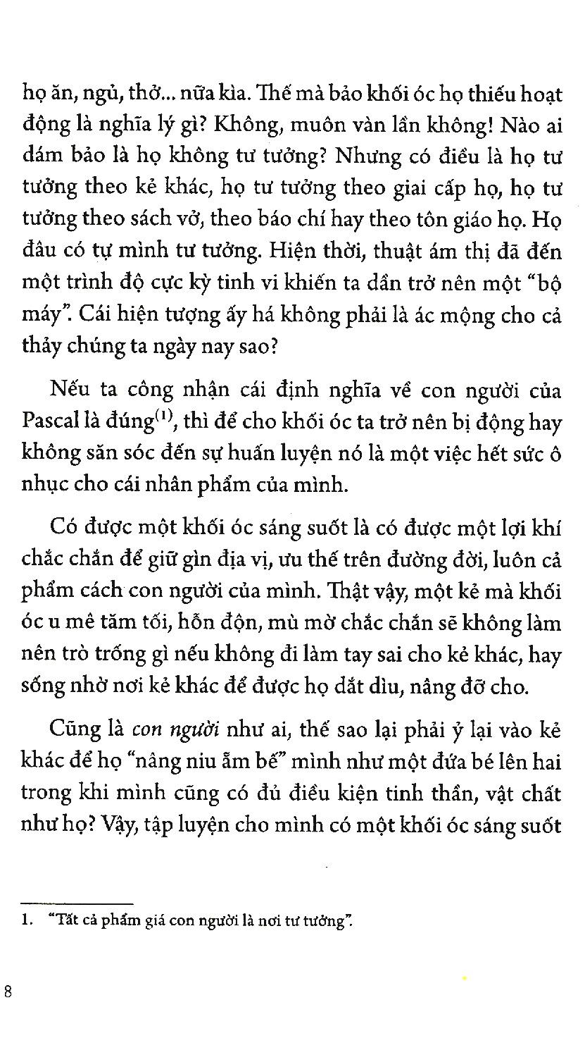 Một cuốn sách có lẽ cần cho mọi người, mọi thế hệ nhất là thời đại AI bây giờ. Rèn luyện trí óc là việc ko hề dễ dàng nhưng chúng ta bắt buộc phải rèn nếu ko muốn bị AI thay thế. Một cuốn sách ngắn gọn, súc tích đưa ra các phương pháp rèn luyện trí óc dựa trên các kiến thức khoa học mà tác giả đúc kết được. Phương pháp thì rất rõ ràng rồi, việc quan trọng là chúng ta thực hiện theo thôi!