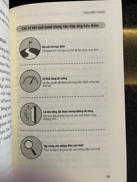 OKR - PHƯƠNG PHÁP THIẾT LẬP MỤC TIÊU VÀ QUẢN LÝ CÔNG VIỆC VƯỢT TRỘI“OKR - Phương pháp thiết lập mục tiêu và quản lý công việc vượt trội” giới thiệu về công cụ OKR - giải pháp quản lý nhân sự và thúc đẩy phát triển doanh nghiệp bền vững. OKR xuất phát từ các nước phương Tây và hiện được sử dụng rộng rãi tại rất nhiều doanh nghiệp trên phạm vi toàn cầu, bất kể quy mô và cách thức hoạt động của các doanh nghiệp đó.