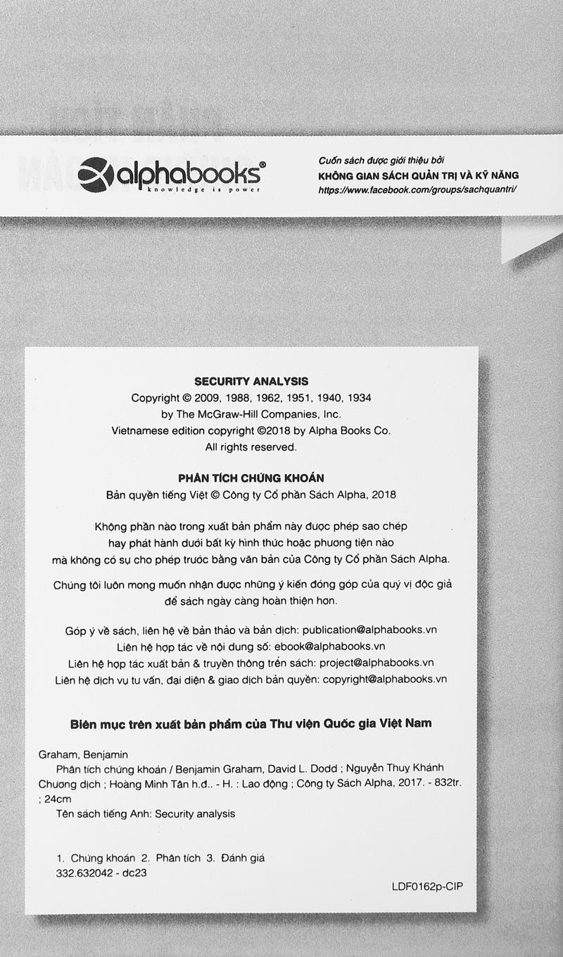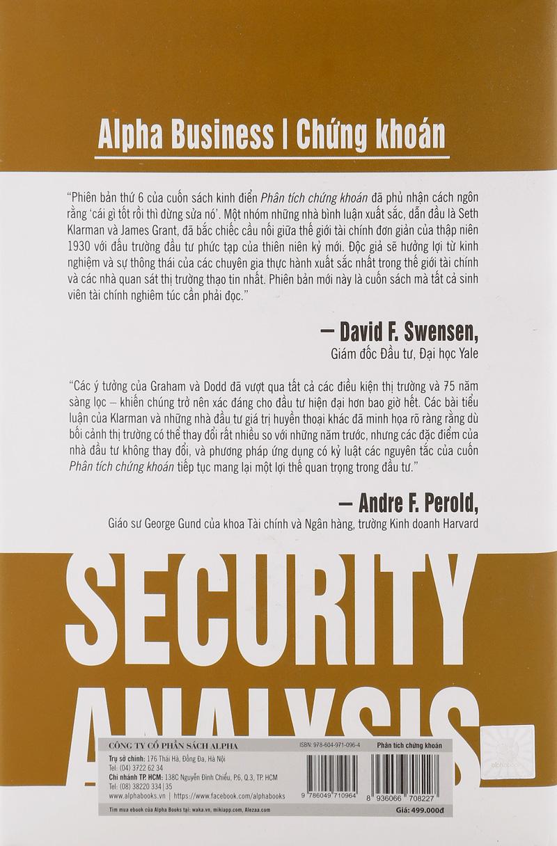 Phân Tích Chứng Khoán là một trong những cuốn sách tài chính có ảnh hưởng nhất thế giới từng được viết ra. Với hơn một triệu bản được bán ra thông qua năm phiên bản trước, Phân tích chứng khoán đã cung cấp cho các thế hệ nhà đầu tư những triết lý và kỹ thuật đầu tư vô cùng giá trị của Benjamin Graham và David L. Dodd.
