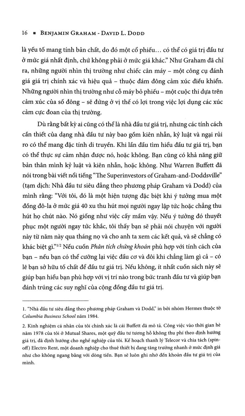 Dựa trên nội dung của phiên bản thứ hai, được xuất bản năm 1940, phiên bản thứ 6 này bổ sung các tiểu luận sinh động và thực tế do những cây viết xuất sắc soạn thảo. Đội ngũ này bao gồm các nhà đầu tư giá trị lỗi lạc, một chuyên gia học thuật tài năng và các cây bút tài chính hàng đầu thế giới. Độc giả sẽ hưởng lợi từ kinh nghiệm và sự thông thái của các chuyên gia thực hành xuất sắc nhất trong thế giới tài chính và các nhà quan sát thị trường thạo tin nhất.