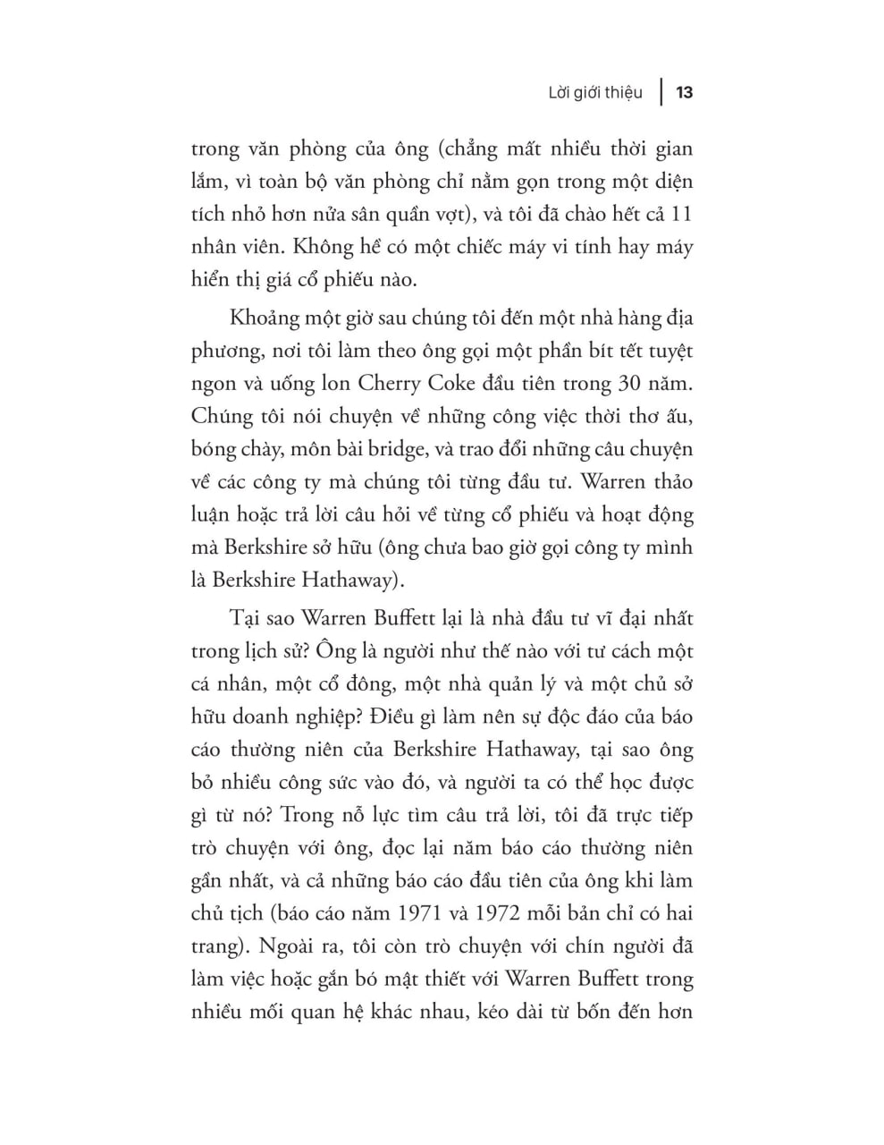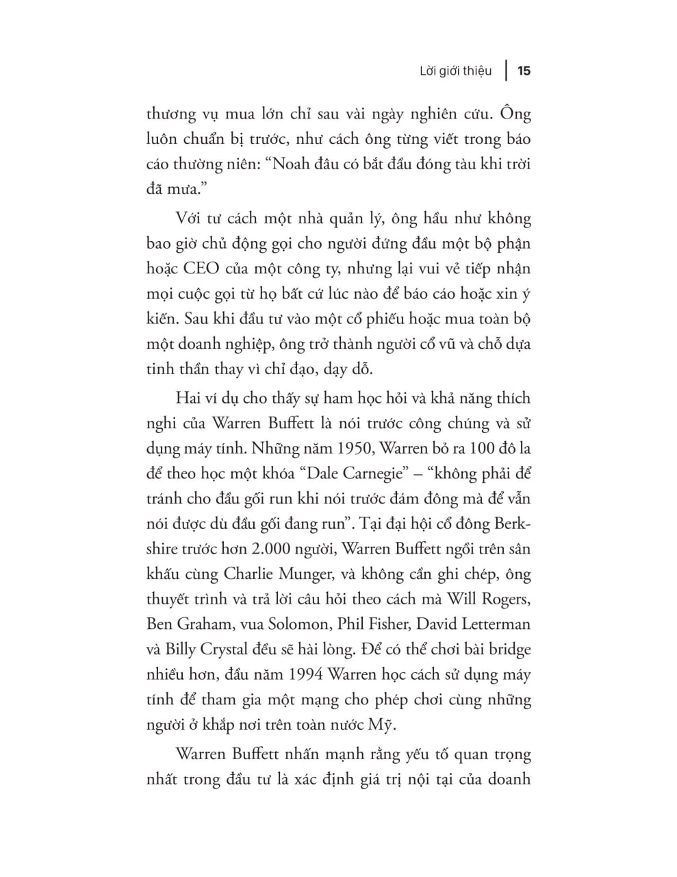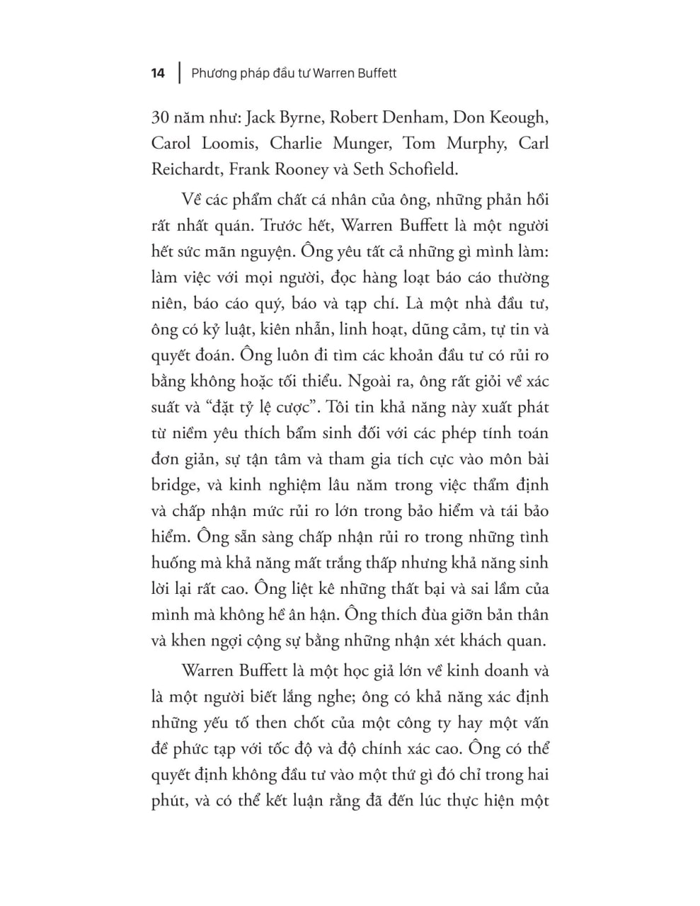 Warren Buffett là nhà đầu tư vĩ đại nhất thế giới, rất ít người có thể sánh kịp tốc độ kiếm tiền vừa nhanh vừa bền vững như ông. Qua nhiều năm, trí tuệ và kỷ lục đầu tư của ông đã mê hoặc cộng đồng đầu tư chuyên nghiệp, trở thành hình mẫu nổi tiếng nhất trong lĩnh vực đầu tư. Nguồn gốc thành công của ông đến từ lối tư duy và các chiến lược đúng đắn đã được giới đầu tư thế giới công nhận là phương pháp luận phù hợp với cả cá nhân và các tổ chức muốn tăng cơ hội kiếm lời từ thị trường chứng khoán.