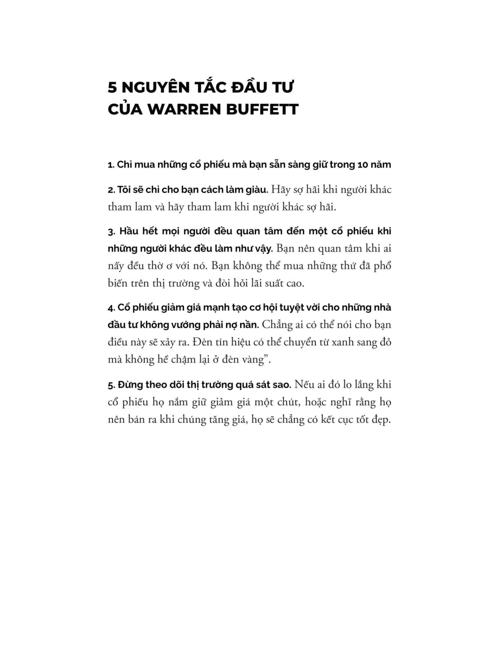 - Quản lý danh mục: tập trung và dài hạn, thay vì đa dạng hóa vô nghĩa
