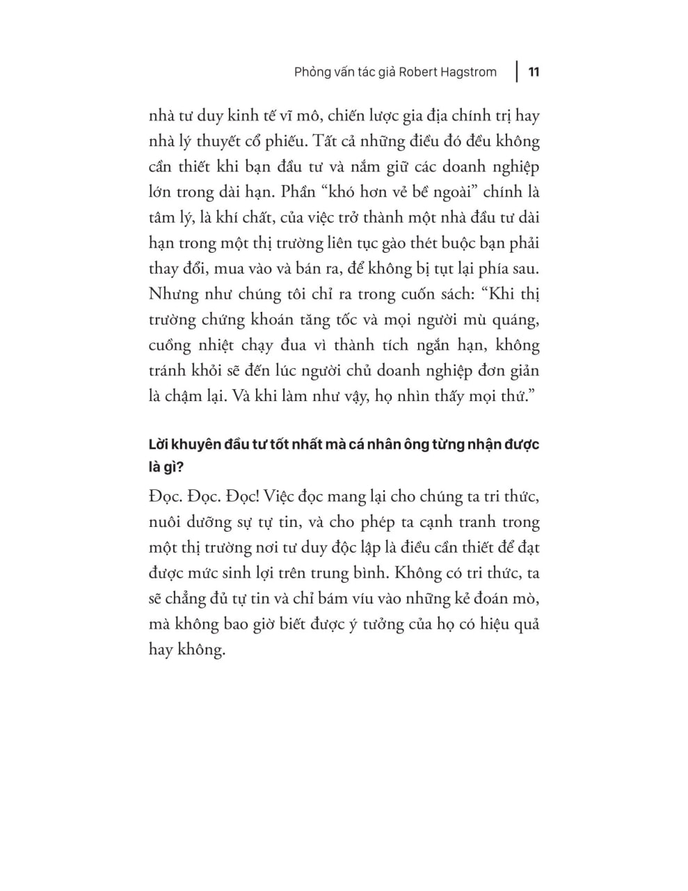Robert G. Hagstrom – Phó chủ tịch Legg Mason Focus Capital, đồng thời là tác giả nhiều cuốn sách bán chạy về đầu tư. Ông từng viết The Warren Buffett Way, bán hơn 1 triệu bản và nằm trong danh sách NYT bestseller .