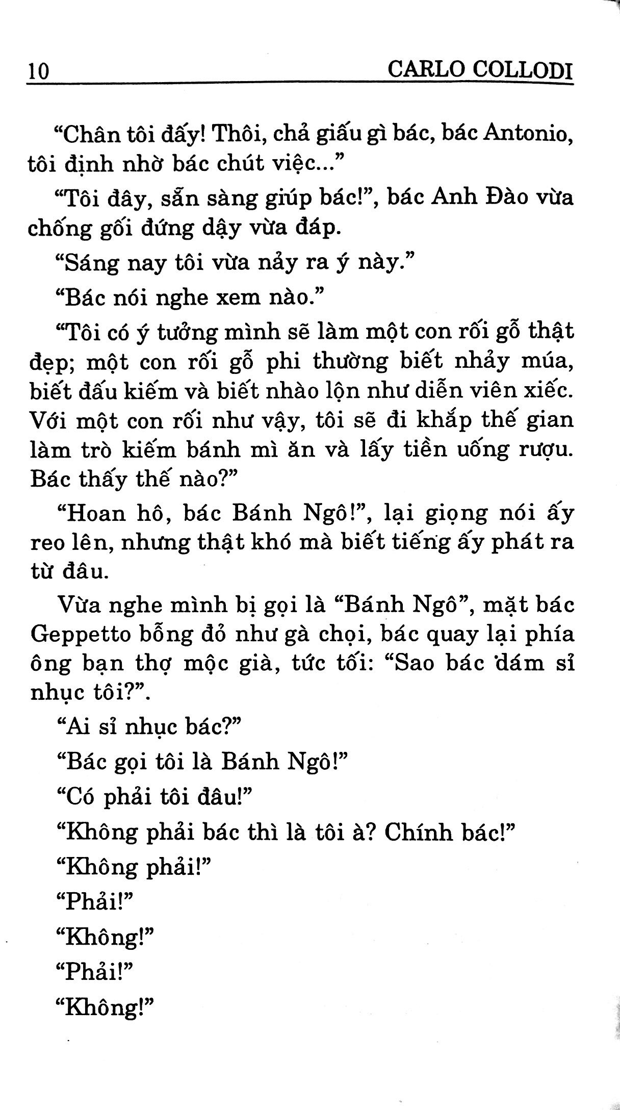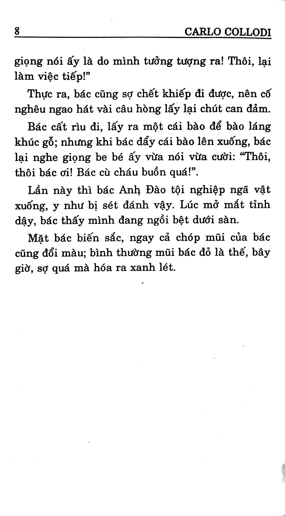 Với cách hành văn lôi cuốn và dí dỏm, qua chú bé người gỗ Pinocchio, Carlo Collodi đã mang đến cho chúng ta bài học sâu sắc về quá trình trưởng thành của mỗi người. Đó là một quá trình mài giũa, rèn luyện đầy gian nan và thách thức. Chỉ khi nào tự bản thân chúng ta biết khắc phục những nhược điểm tồn tại ở bên trong mình, chống lại những cám dỗ thì mới có thể đi đúng hướng và thực sự trưởng thành.