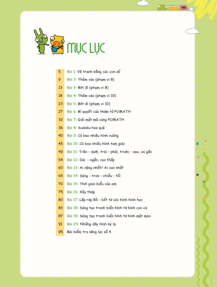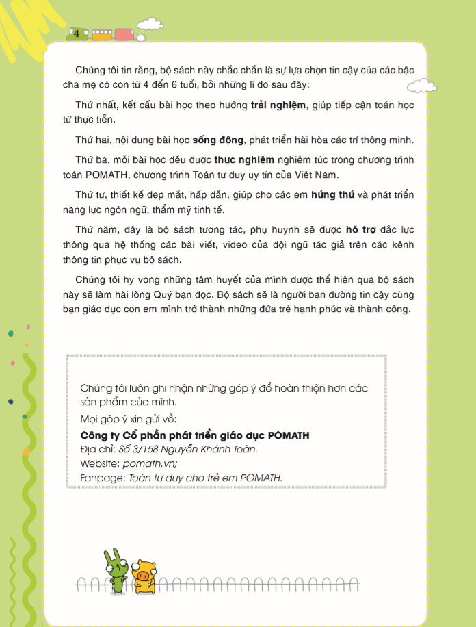 Các bậc phụ huynh và các bé hãy cùng chúng tôi điểm qua những ưu điểm tuyệt vời của cuốn sách POMATH tập 4 nhé: