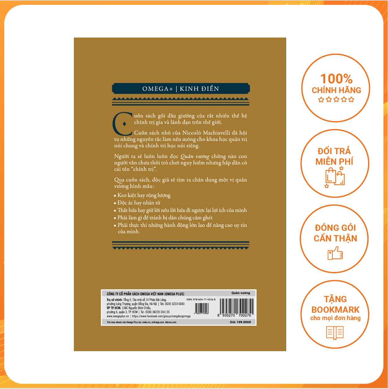 Shop đã tiếp nhận những phản hồi từ phía anh/chị. Lời đầu tiên shop rất xin lỗi anh/chị vì trải nghiệm chưa trọn vẹn này ạ. Sau khi làm việc với đơn vị phát hành cuốn “Quân vương”, shop xin thông tin tới anh/chị về vấn đề in ấn của sản phẩm ạ: cuốn sách nằm trong bộ sách kinh điển của Omega+ và hiện không gặp phải lỗi in ấn nào ạ. Cuốn “ Quân vương” được in dưới dạng bìa mềm, có áo ôm với bìa sách được in như sản phẩm anh/chị đã nhận được. Chúng em xin cảm ơn những phản hồi quý báu của anh/chị.