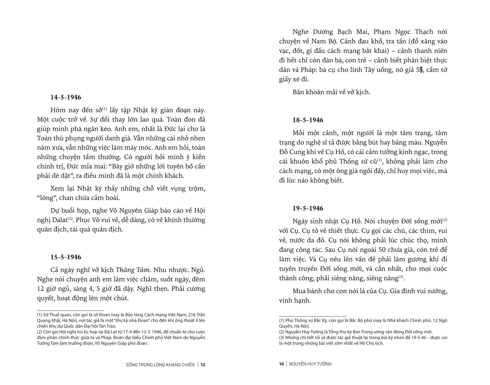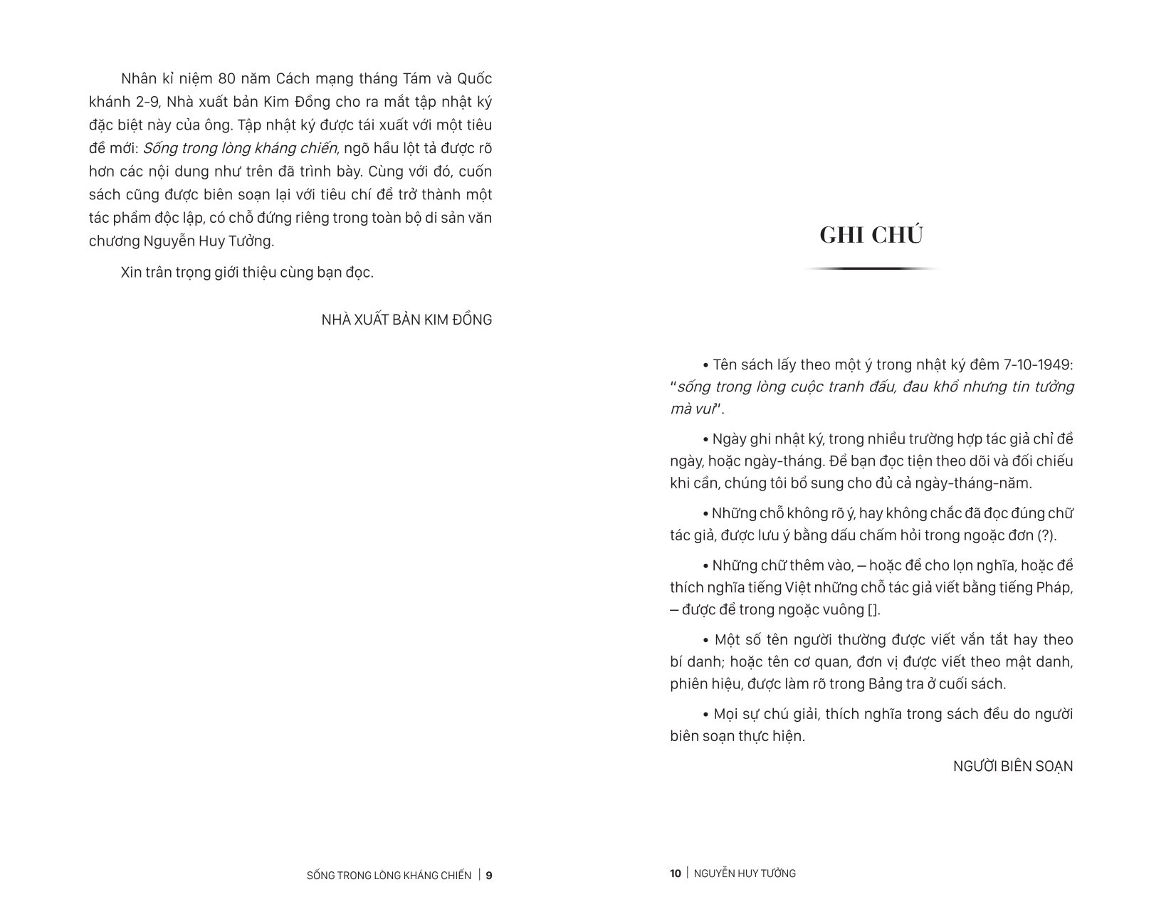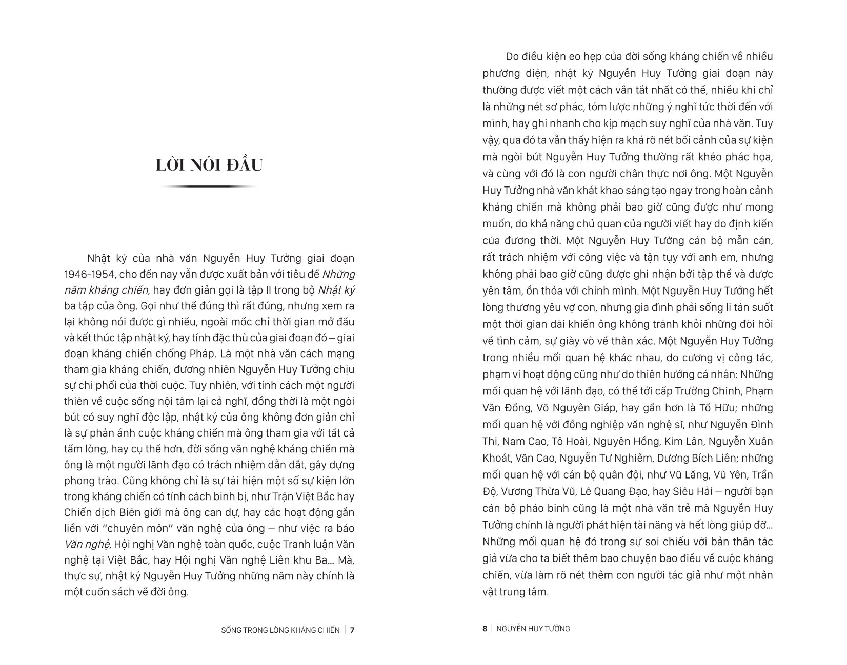 “Sống trong lòng kháng chiến” là tập nhật ký đặc biệt của nhà văn Nguyễn Huy Tưởng, ghi lại chân thực những năm tháng đầy gian khó nhưng giàu lí tưởng trong cuộc kháng chiến chống Pháp (1946–1954). Cuốn sách là tấm gương phản chiếu tâm hồn một nhà văn đại diện cho một thế hệ nghệ sĩ yêu nước, giàu trăn trở, sống giữa thời đại sục sôi của dân tộc. Tập nhật ký “Sống trong lòng kháng chiến” vừa tự sự, đầy xúc động và nhân văn vừa là những trang sử sục sôi của văn nghệ kháng chiến.“Trên đường kháng chiến Tuyên – Hà