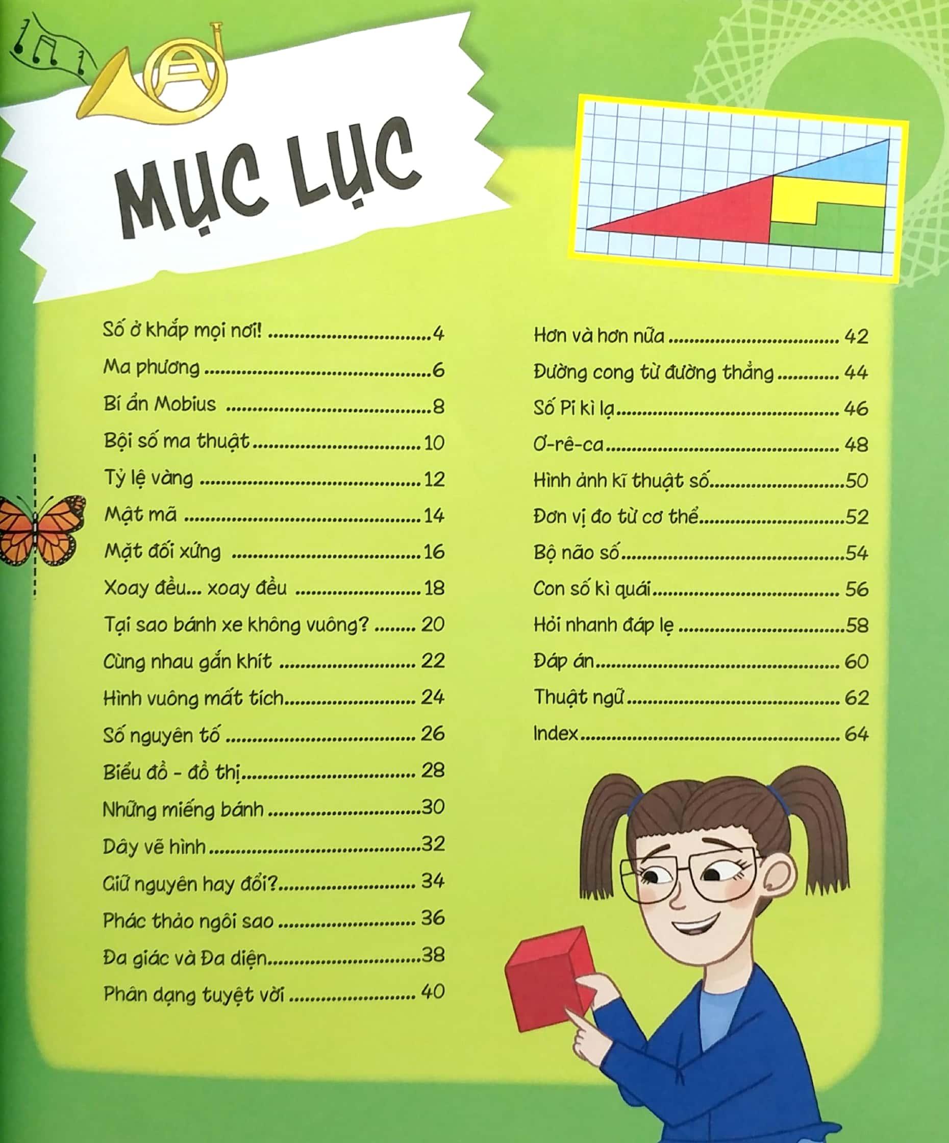 Với cuốn sách hấp dẫn , đầy màu sắc này , Toán học trở nên thật kỳ diệu ! Bạn sẽ trải qua những phút giây giải trí vui vẻ , thú vị cùng gia đình và bạn bè khi cùng đương đầu với các ô số bí ẩn hoặc “bội số ma thuật” , chơi trò chơi thẻ số nguyên tố hay vẽ cây phân dạng Fractal . Qua cuốn sách này chúng mình có thể khám phá xem Toàn học thú vị ra sao , và là một phần quan trọng trong cuộc sống hằng ngày như thế nào .
