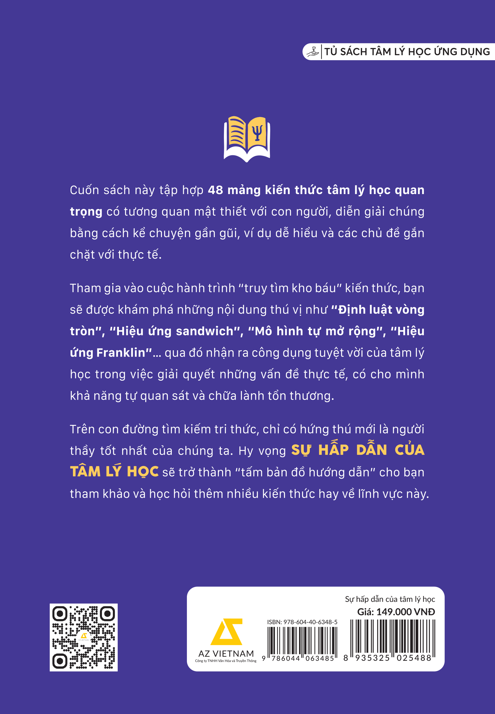 Hiện nay, công chúng ngày càng quan tâm đến sức khỏe tinh thần nên nhận thức về việc điều chỉnh và chữa lành tâm lý cũng dần được để ý. Dựa trên thực tế như vậy, một đơn vị giáo dục tại Trung Quốc đã cho ra đời SỰ HẤP DẪN CỦA TÂM LÝ HỌC. Khác với các cuốn sách chuyên ngành theo kiểu truyền thống, cuốn sách này sử dụng hình thức kể chuyện để phổ biến kiến thức, lấy ví dụ từ đời sống, phim ảnh, sách báo,… để phân tích theo hướng gần gũi và thú vị hơn. Trong vô thức, bạn sẽ tự nhiên nắm được kiến thức cơ bản về tâm lý học, tích lũy từng chút một những lý luận quan trọng có tương quan mật thiết với con người.Ví dụ: “Định luật lựa chọn mâu thuẫn” được đề cập trong sách vừa hay có thể giúp bạn sắp xếp hợp lý các mục tiêu trong công việc và cuộc sống, tránh để bản thân rơi vào trạng thái mơ hồ, rối loạn; với “Hiệu ứng sandwich”, bạn sẽ biết cách đưa ra lời phê bình sao cho không làm tổn thương lòng tự trọng của đối phương, giúp họ tích cực tiếp thu và sửa chữa khuyết điểm của mình; qua “Hiệu ứng Franklin”, bạn sẽ hiểu tại sao mối nhân duyên thực sự tốt đẹp lại bắt đầu từ việc “làm phiền người khác”;…