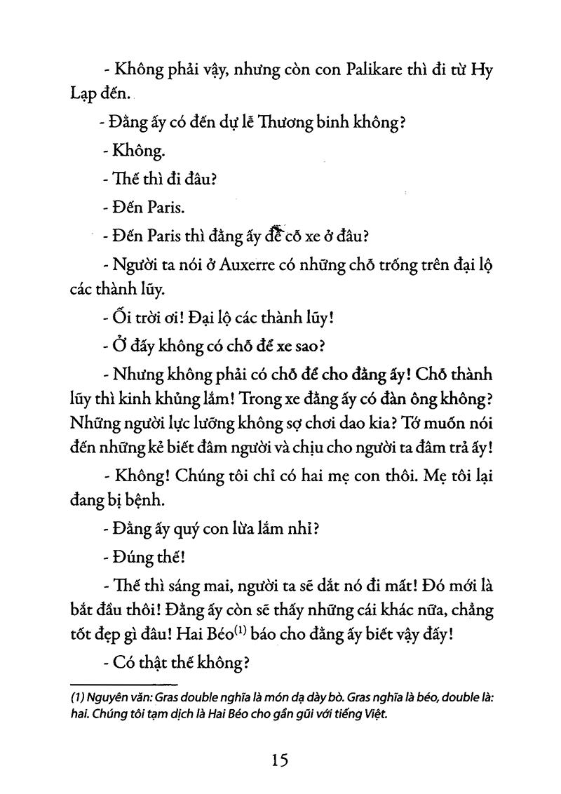 1. Hình thức: khổ nhỏ (13 x 19xcm) cầm vừa tay. 2. Mực in rõ nét, giấy hơi ngà, khiến mắt dễ chịu khi đọc. 3. Nội dung: gồm 2 phần chia làm 24 chương. 4. Tên nhân vật được giữ nguyên, mặt dù trang "LỜI GIỚI THIỆU" ghi và Việt Hóa nhưng tên không bị phiên âm.