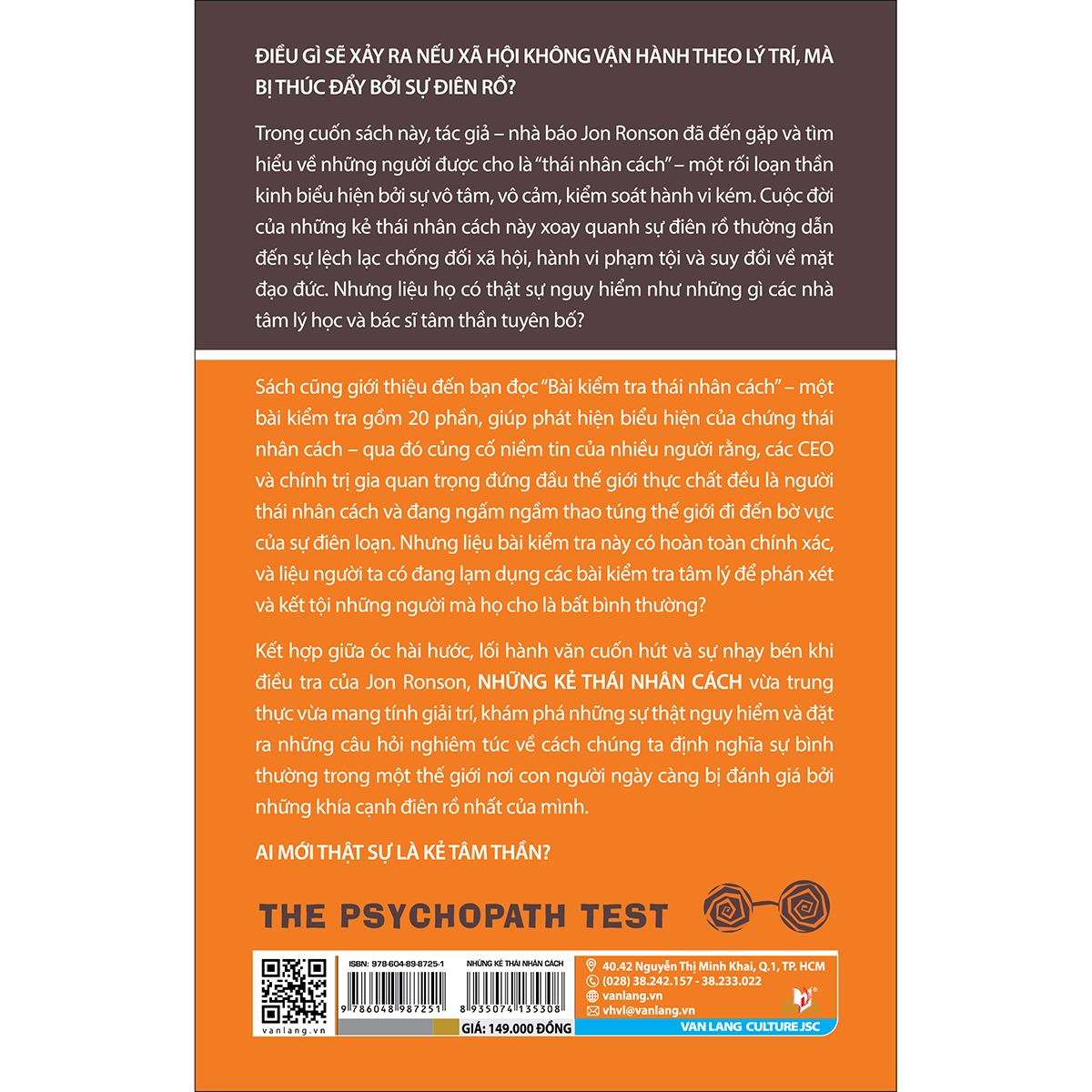 Trong cuốn sách này, tác giả – nhà báo Jon Ronson đã đến gặp và tìm hiểu về những người được cho là “thái nhân cách” – một rối loạn thần kinh biểu hiện bởi sự vô tâm, vô cảm, kiểm soát hành vi kém. Cuộc đời của những kẻ thái nhân cách này xoay quanh sự điên rồ thường dẫn đến sự lệch lạc chống đối xã hội, hành vi phạm tội và suy đồi về mặt đạo đức. Nhưng liệu họ có thật sự nguy hiểm như những gì các nhà tâm lý học và bác sĩ tâm thần tuyên bố?