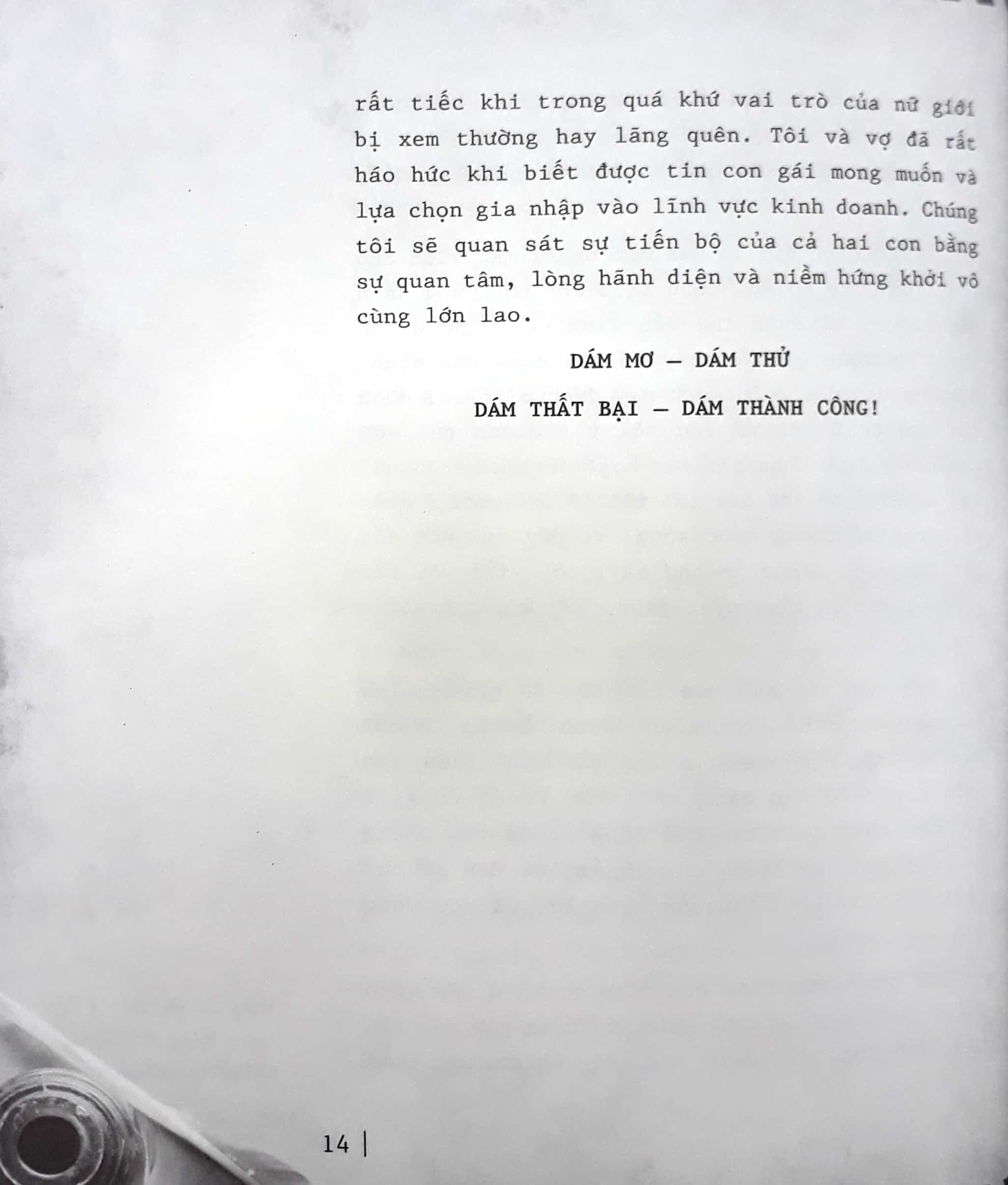 Tôi ước ao những bạn trẻ ở Việt Nam đều được đọc cuốn này. Hãy cứ coi như đó chính là bức thư, là những điều mà cha mẹ họ muốn gửi cho họ...