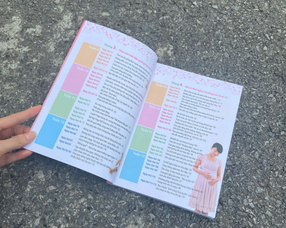 - Hướng dẫn từng ngày: Cuốn sách chia sẻ kiến thức về thai giáo một cách chi tiết, theo từng ngày trong suốt 40 tuần mang thai.