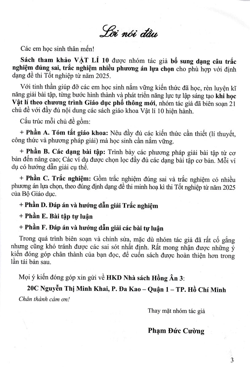 Thông số kỹ thuật Sách Tham Khảo Vật Lí Lớp 10 (Dùng Chung Cho Các Bộ SGK Hiện Hành) - HA