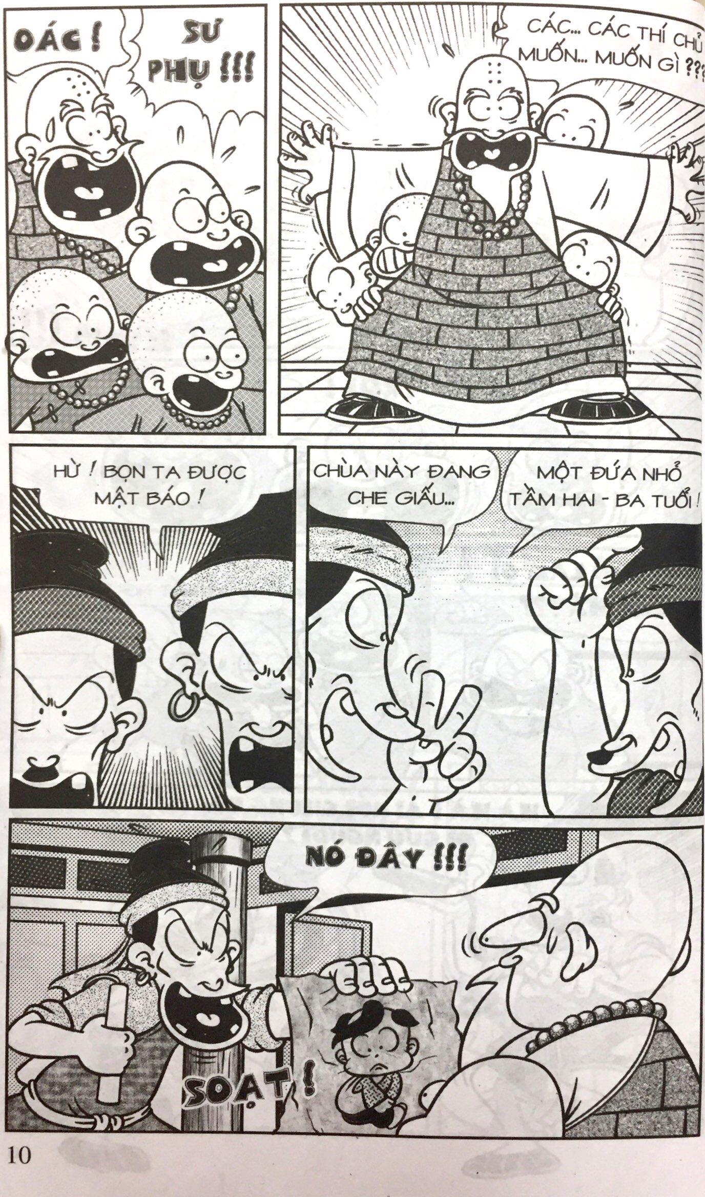 Vào một buổi sáng, một cậu bé hai tuổi, vai đeo tay nải, đứng khóc um trước cổng chùa. Bên trong tay nải là một bức thư có nội dung rất đặc biệt. Cũng bắt đầu từ đó lắm chuyện dở khóc dở cười xảy ra, từ sư Cụ cho đến các chú tiểu chạy nháo nhào, không yên một ngày nào. Bọn giang hồ dữ tợn luôn rình rập quanh chùa, khiến mọi người đều nơm nớp lo sợ, nhất là mỗi khi Tĩn khóc ré lên giữa đêm.