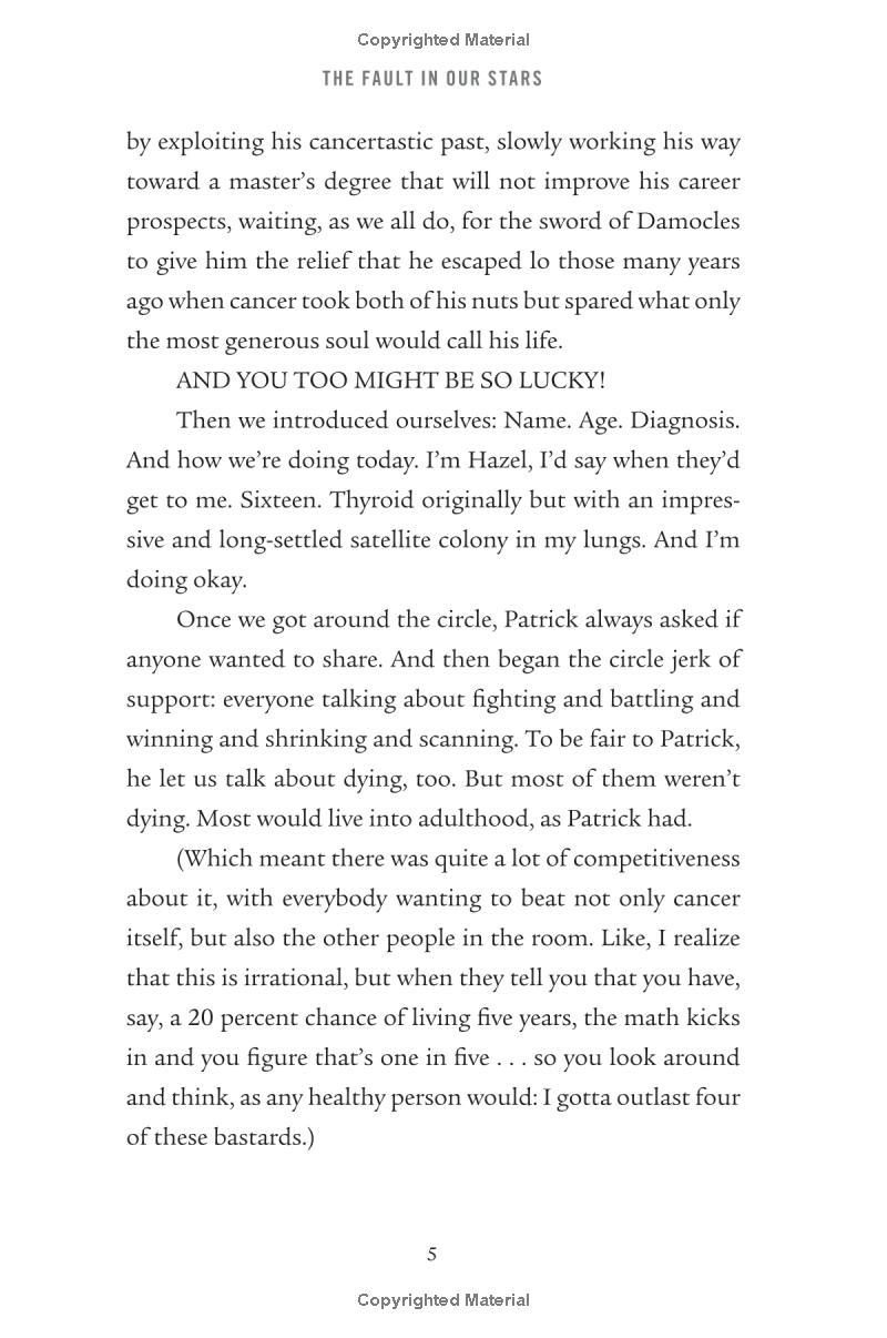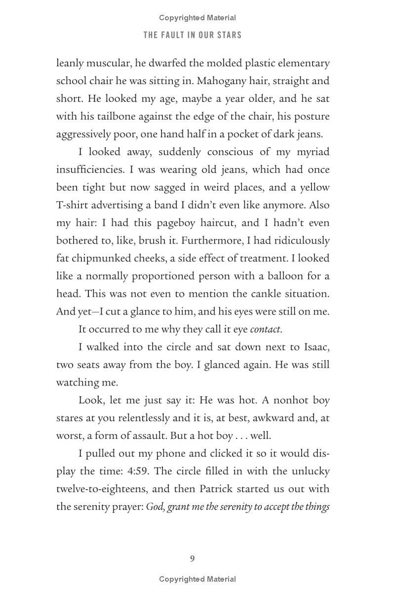 Despite the tumor-shrinking medical miracle that has bought her a few years, Hazel has never been anything but terminal, her final chapter inscribed upon diagnosis. But when a gorgeous plot twist named Augustus Waters suddenly appears at Cancer Kid Support Group, Hazel's story is about to be completely rewritten.