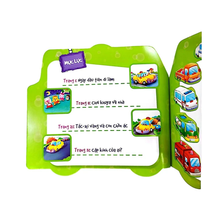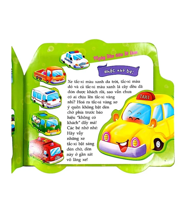 - Thiết kế độc đáo: Khổ sách nhỏ gọn, dễ cầm nắm, hình dáng như chiếc ô tô nhỏ, tạo sự thích thú cho trẻ.