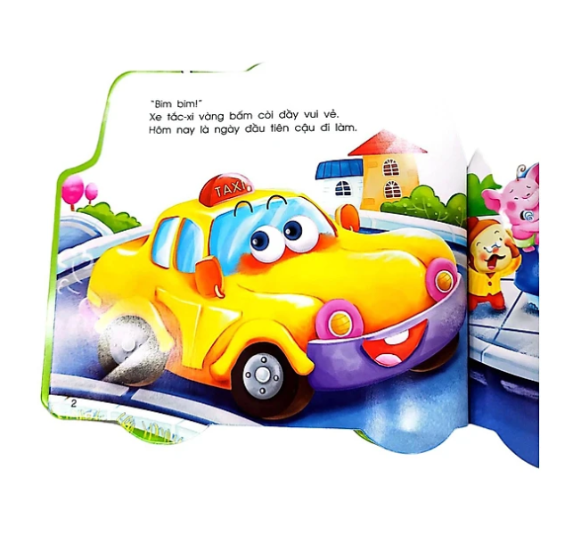 - Chào các bạn nhỏ, ngày nào các bạn cũng trông thấy xe tắc-xi phải không? Tớ là tắc-xi vàng. Tớ là một chiếc tắc-xi rất đặc biệt. Mau mau giở sách xem tớ nhiệt tình giúp đỡ mọi người thế nào nhé!