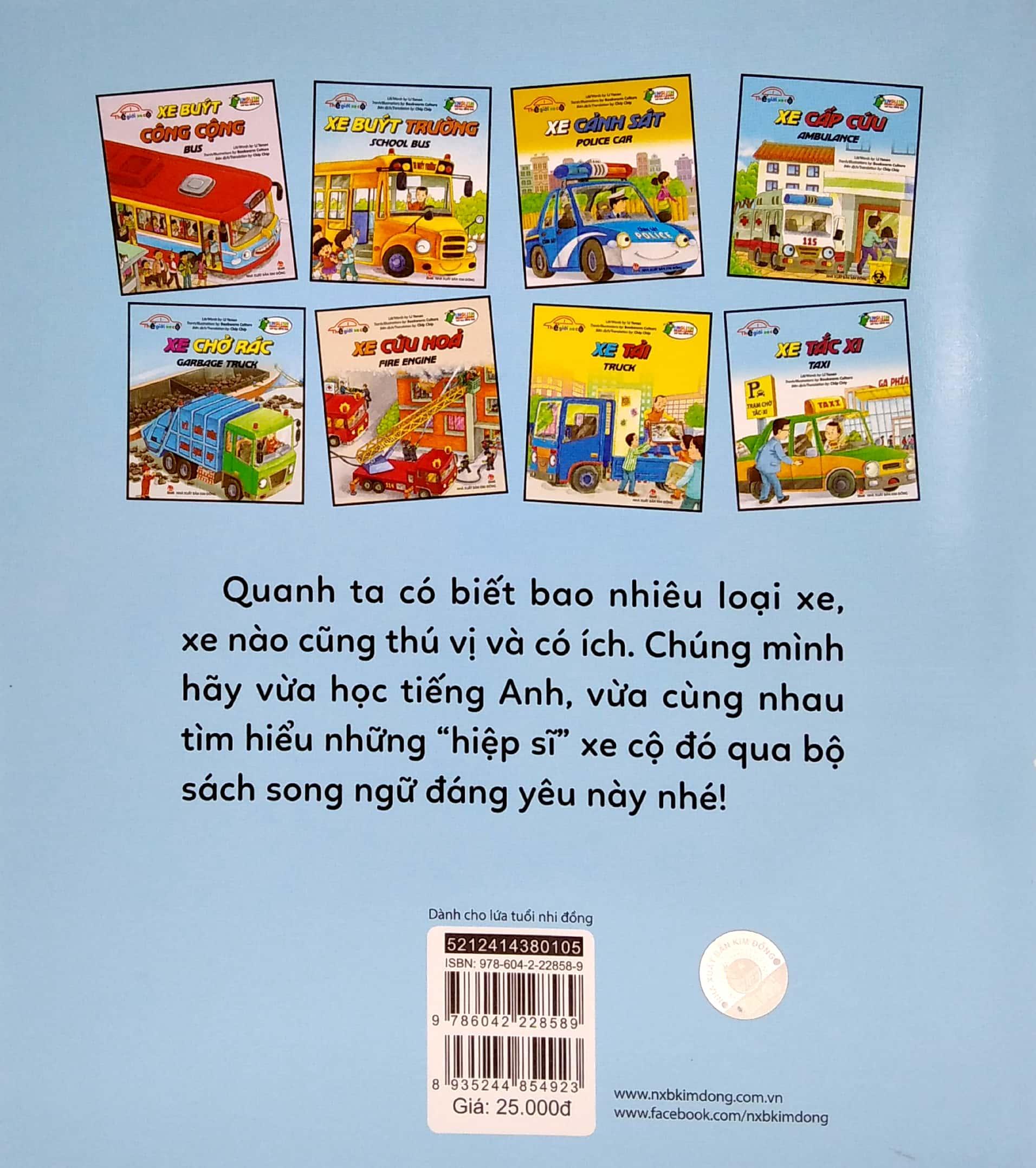 Quanh ta có biết bao nhiêu loại xe, xe nào cũng thú vị và có ích. Chúng mình hãy vừa học tiếng Anh, vừa cùng nhau tìm hiểu những “hiệp sĩ” xe cộ đó qua bộ sách song ngữ đáng yêu này nhé!