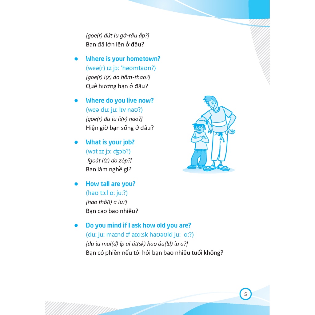 - Nội dung cuốn sách được chia thành từng chủ đề thông dụng hàng ngày, có phiên âm quốc tế, phiên âm tiếng Việt và kèm theo đĩa CD để các bạn có thể thực hành.
