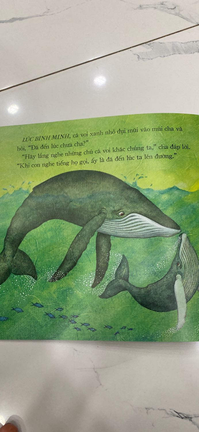 Khi bơi trên đại dương rộng lớn, cá voi xanh nhỏ có nhiều câu hỏi cho cha mình, đặc biệt là về những cuộc di cư mà họ phải thực hiện.