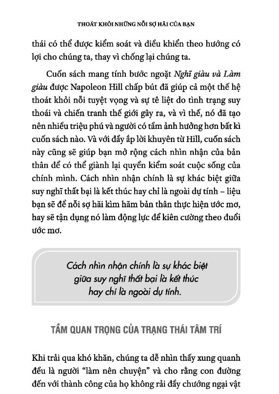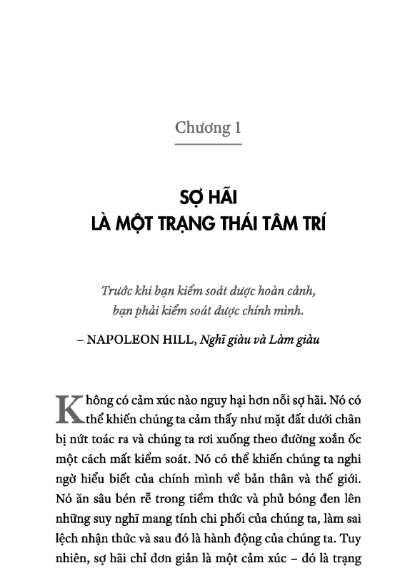 Nỗi sợ hãi là một trở ngại lớn ngăn cản chúng ta đạt được những mục tiêu và ước mơ. Cuốn sách này sẽ giúp bạn hiểu rõ hơn về bản chất của nỗi sợ hãi và cung cấp những công cụ cần thiết để vượt qua nó. Từ những lời khuyên của Napoleon Hill, một trong những chuyên gia về phát triển bản thân hàng đầu thế giới, bạn sẽ học được cách: