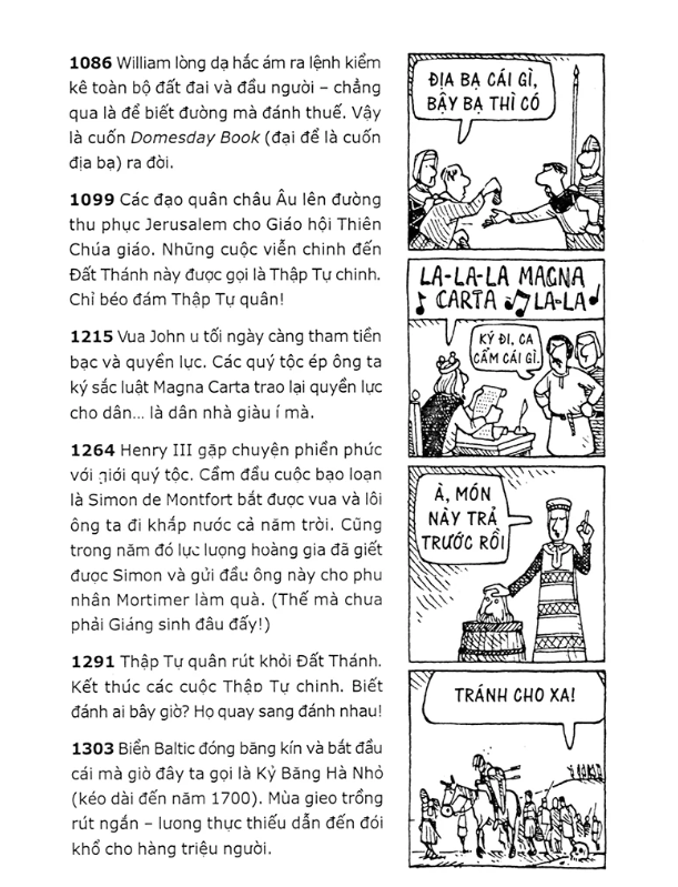 - Hình ảnh minh họa sinh động: Những hình vẽ hài hước và màu sắc giúp bạn dễ dàng hình dung về cuộc sống thời Trung cổ.